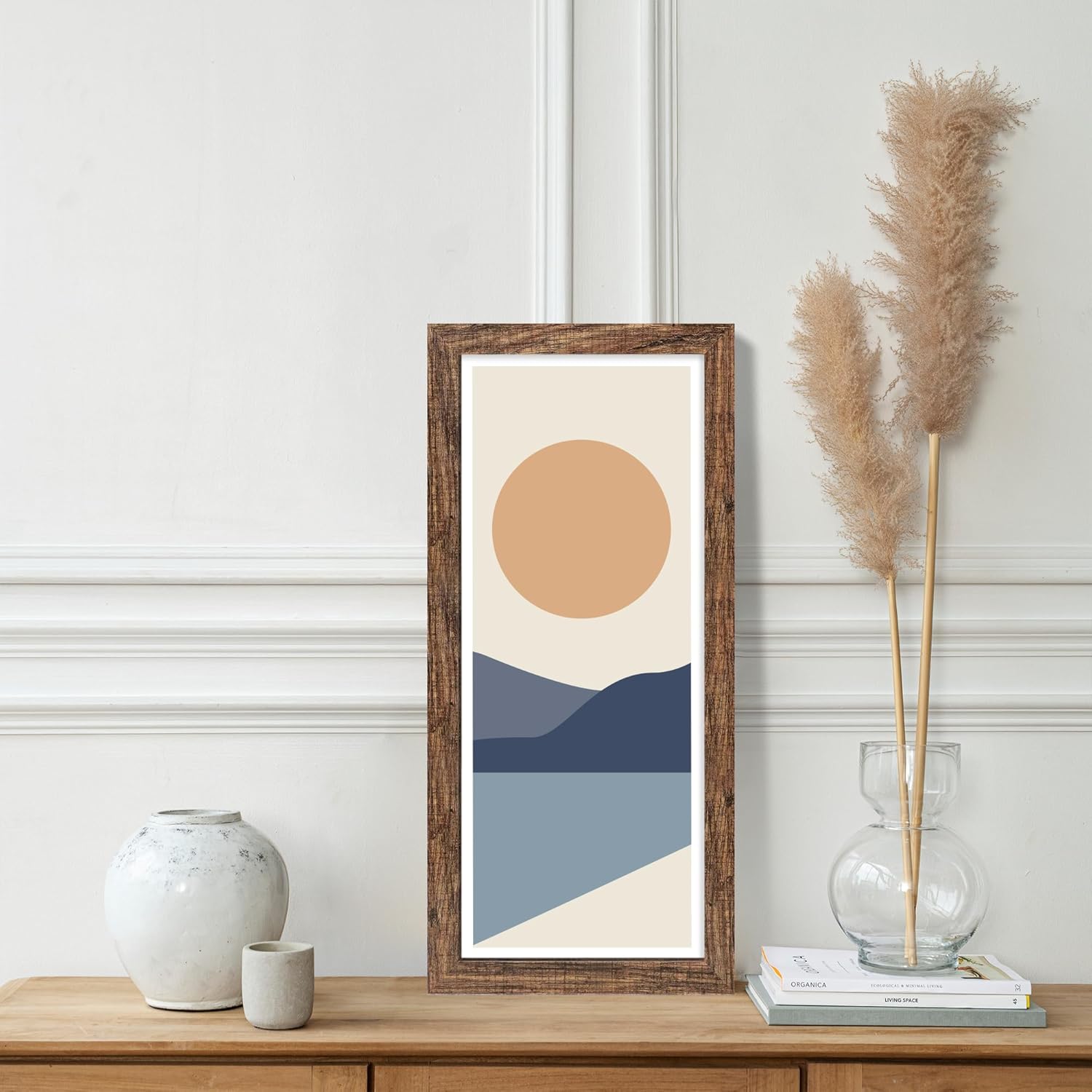 • Rustic Wood and Tempered Glass - The 8x20 poster frames made of durable MDF wood compared to other flimsy PS or plastics frames. we use tempered glass is an exceptional alternative to plexiglass, eliminating the inconveniences of bending, reflection, fragility, and susceptibility to scratches. Its edges are meticulously polished, ensuring your safety and shielding you from the harm caused by sharp glass edges