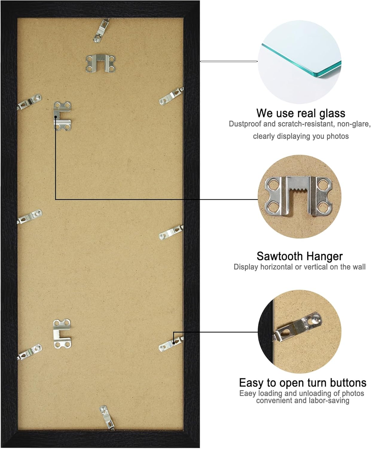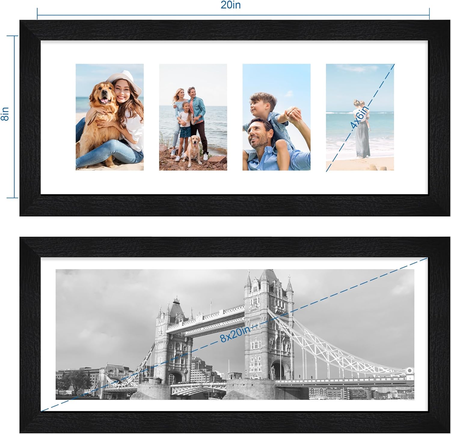 • Fit for 2 Sizes Photos - This poster frames 8 x 20 overall dimension is 9.7x21.7x0.7 inches, fits 8x20 picture without mat, 4 open 4x6 picture with mat. The actual mat opening was designed slightly smaller than photo itself in order to hold it steadily while not a defect