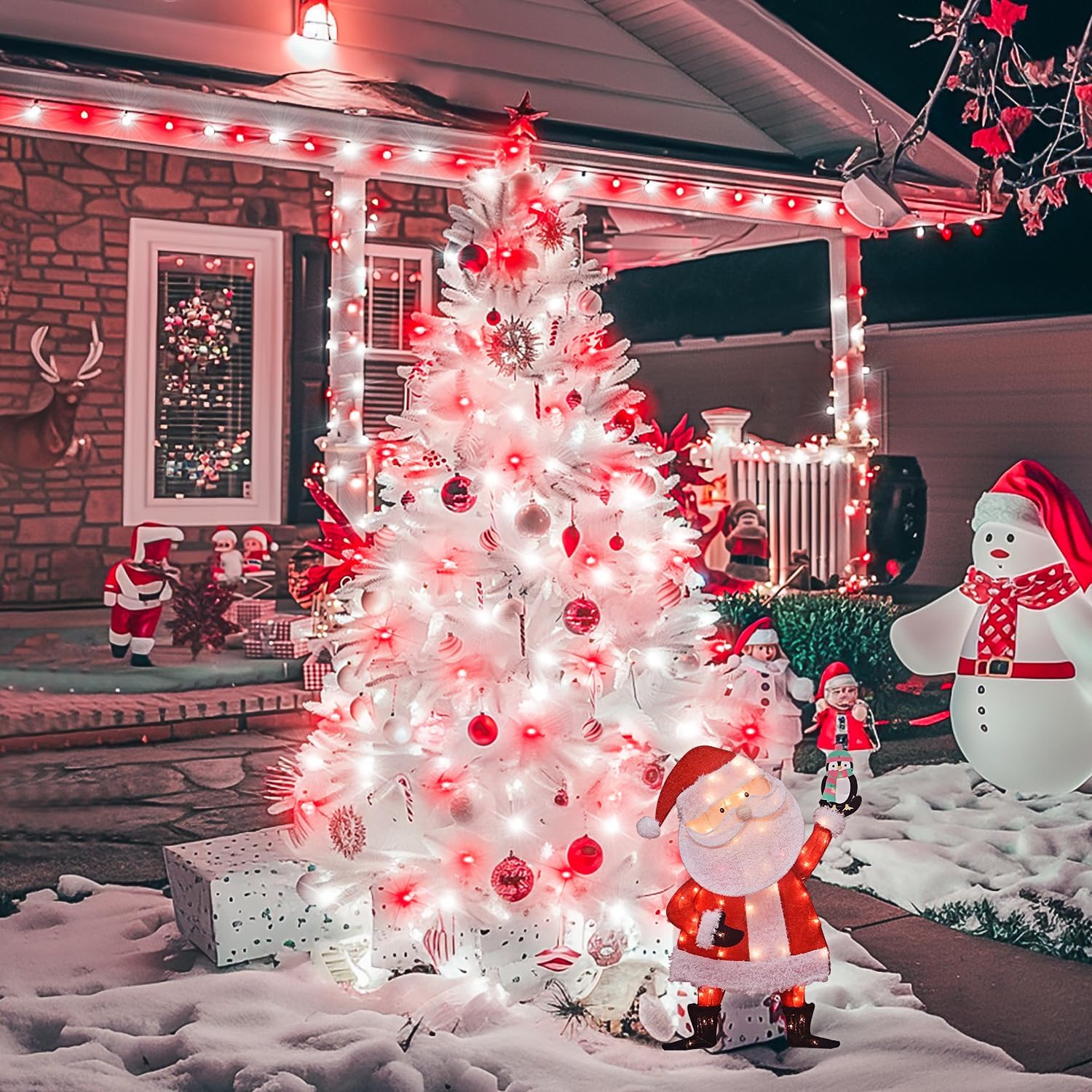 • 【8 Modes & Timer & Remote】This outdoor Christmas lights come with a wireless remote control. 8 different light modes: Steady on + 7 flash modes. Our red white led outdoor Christmas tree lights also timing function and 3 level dimming function. Different modes, timer and dimming are controlled by the remote.