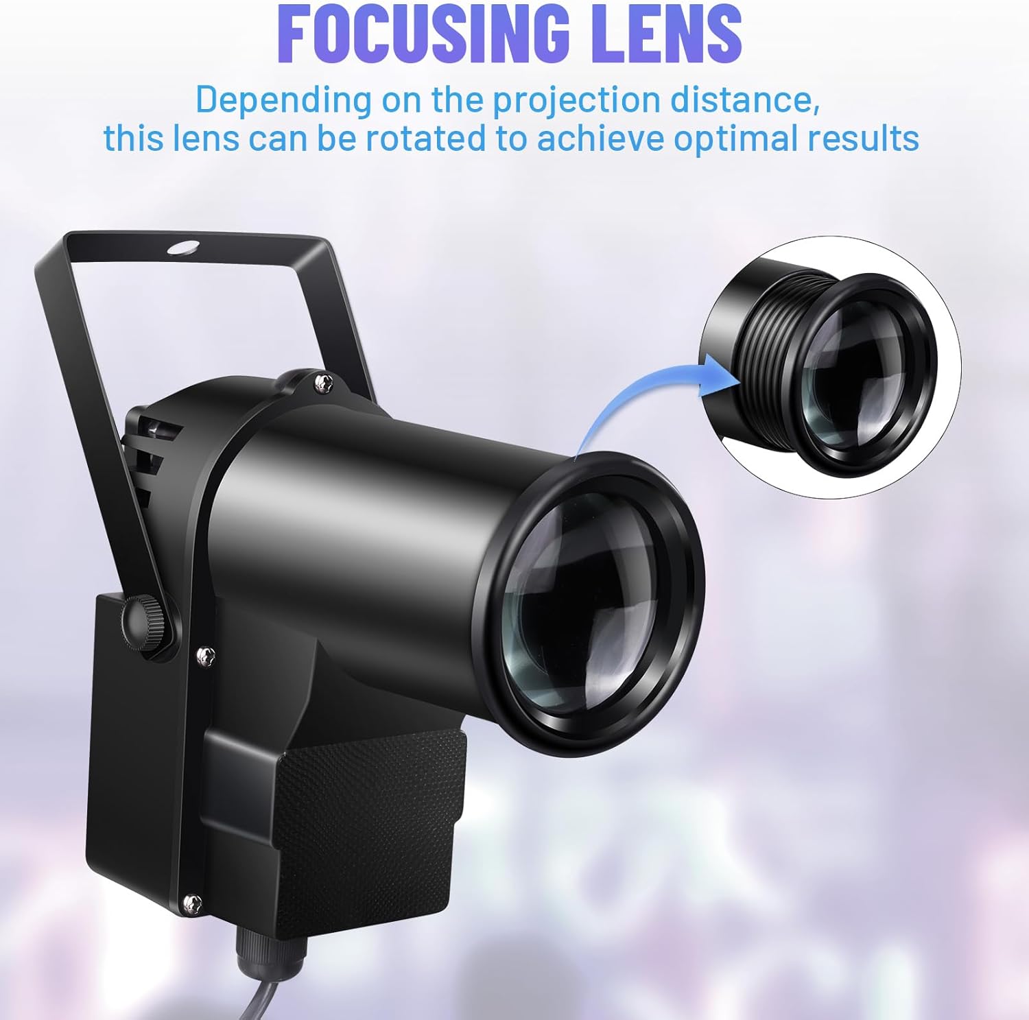 • Spotlight with 3 Control Mode: Remote Control/ DMX 512/ Voice-controlled. Remote Control RGBW Color selection and Voice-controlled; DMX512 Control RGBW Color and Voice Control RGBW mixed color, strobe and dimming. Simply rotate the lens and adjust the installation distance to customize the spot size.