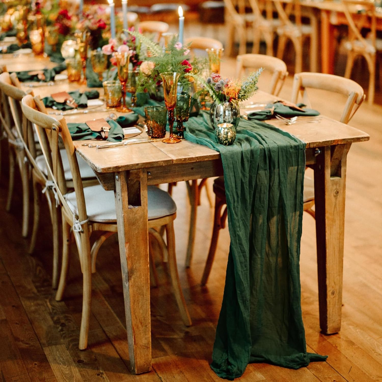Hahuho Emerald Green Cheesecloth Table Runner 10ft, Gauze Boho Rustic Table Runners for Wedding Birthday Party Baby Shower Decorations(6 Pack , 35x120 Inches)