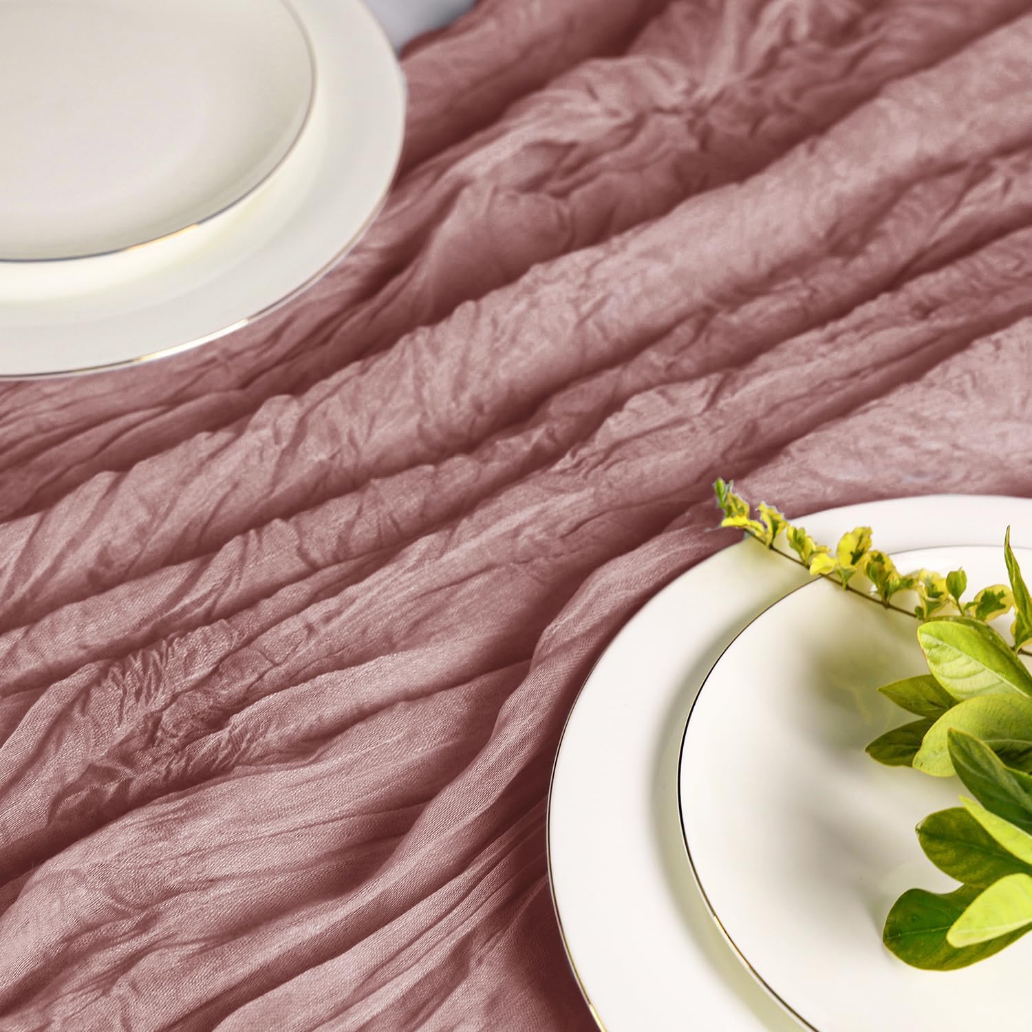 Hahuho Dusty Pink Cheesecloth Table Runner 10ft, Gauze Boho Rustic Table Runners for Wedding Birthday Party Baby Shower Decorations(6 Pack , 35x120 Inches)