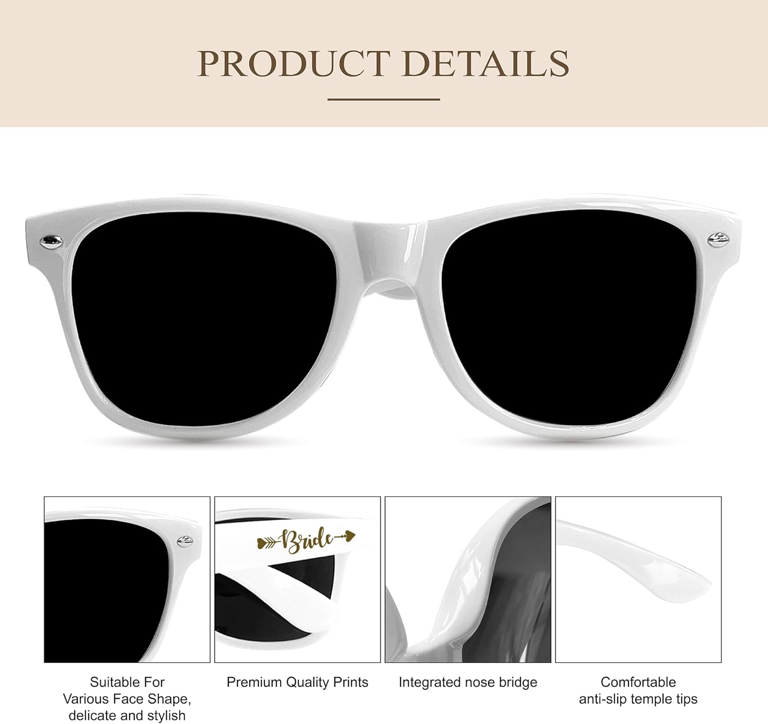 • Perfect for Bachelorette Party!---These fun and stylish wedding sunglasses are the perfect addition to your festivities. Take photos, laugh, have a great time and then let your wedding party keep them as gifts.
