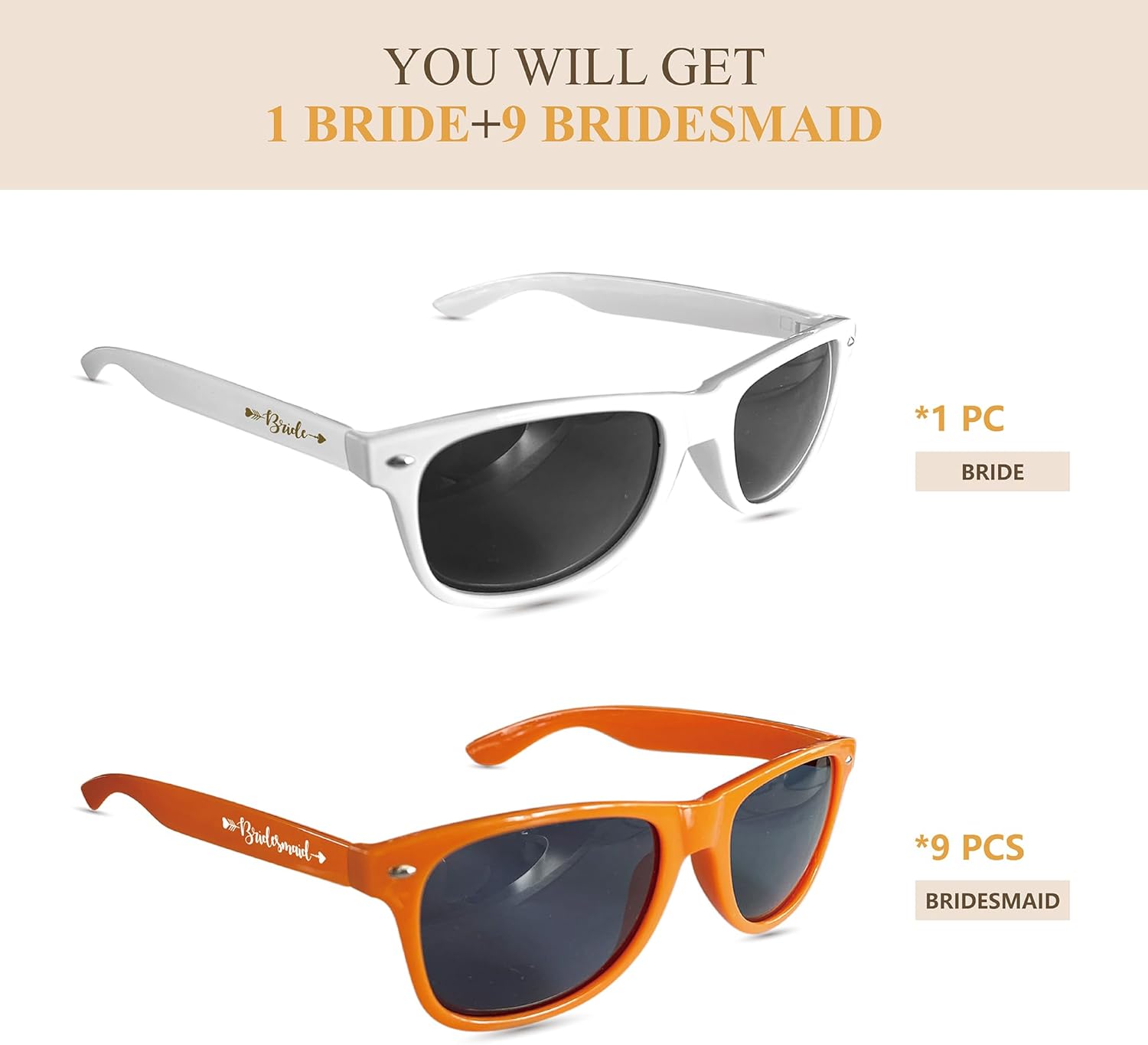 LADY&HOME 10 Pack Bachelorette Sunglasses,Bride Bridesmaid Sunglasses for Bachelorette Party Favors Bridesmaid Proposal Gifts (Terracotta)