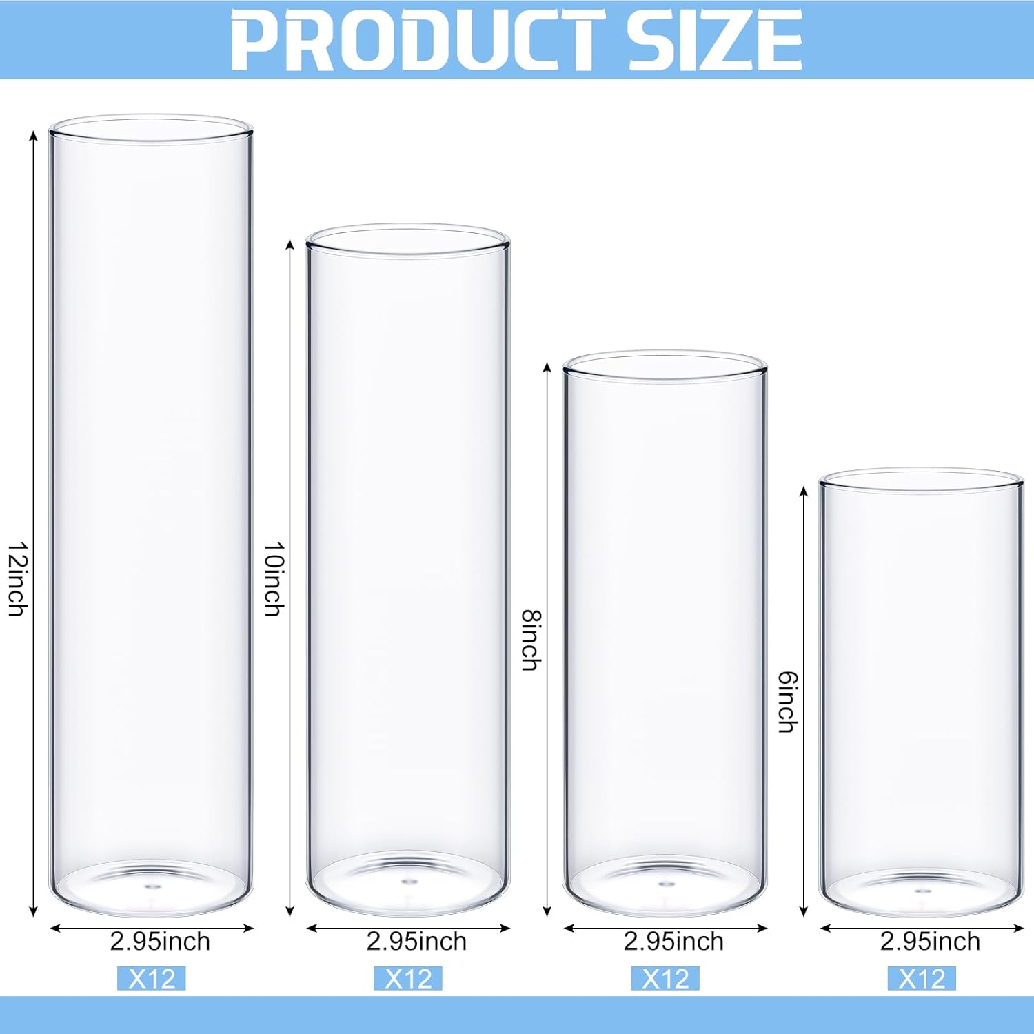Sawysine 48 Pcs Glass Cylinder Vases 2.5''/2.95''/3.9'' Diameter Clear Flowers Vase Hurricane Floating Candles Holders for Table Centerpieces (2.95 x 6 in,2.95 x 8 in,2.95 x 10 in,2.95 x 12 in)