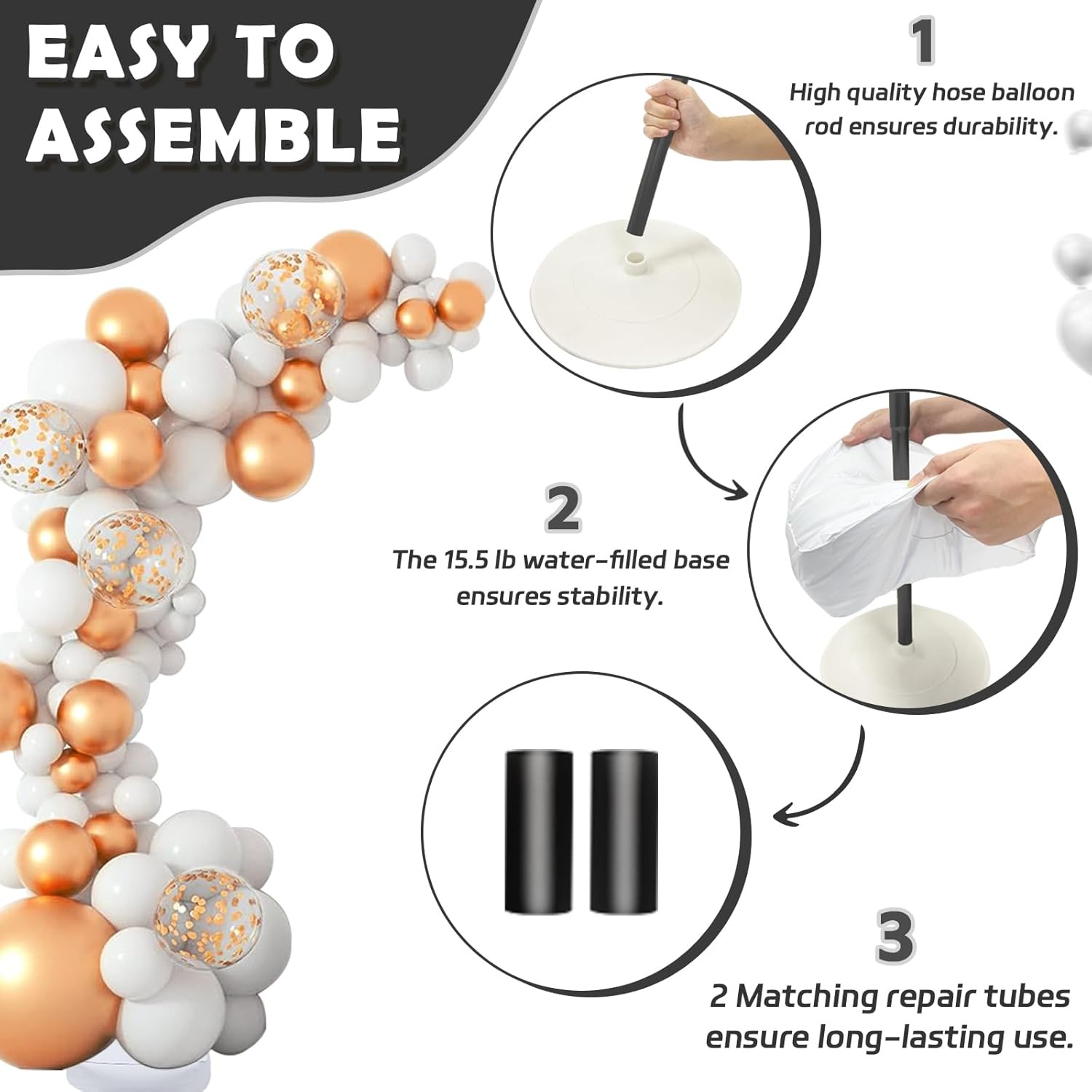 • 🌟Premium Quality: Engineered with precision, our perfect arch balloon stand excels in both stability and durability. The robust water bag base effortlessly supports balloon and decoration weight, ensuring steadfast stability and preserving your decor's perfection throughout your event.