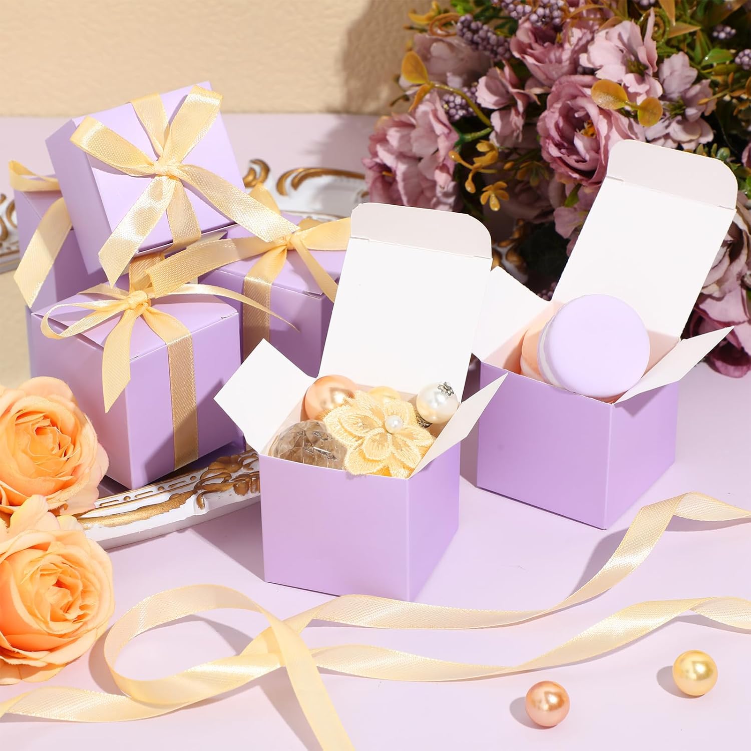 Jutom 100 Pcs Mini Favor Boxes Extra Small Candy Boxes Paper with Gold Ribbon for Christmas Thanksgiving Day Birthday Wedding Anniversary Supplies(2 x 2 x 2 Inch,Lavender)