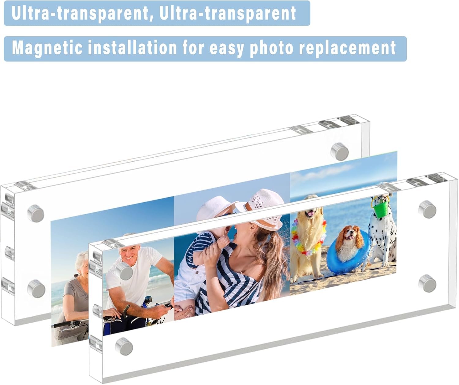 HELPLEX Acrylic Frame, 5 Pack 2x6 Photo Booth Frames, 20mm Thicker Frameless Clear Double Sided Magnetic, Free Standing Desktop Display Stand