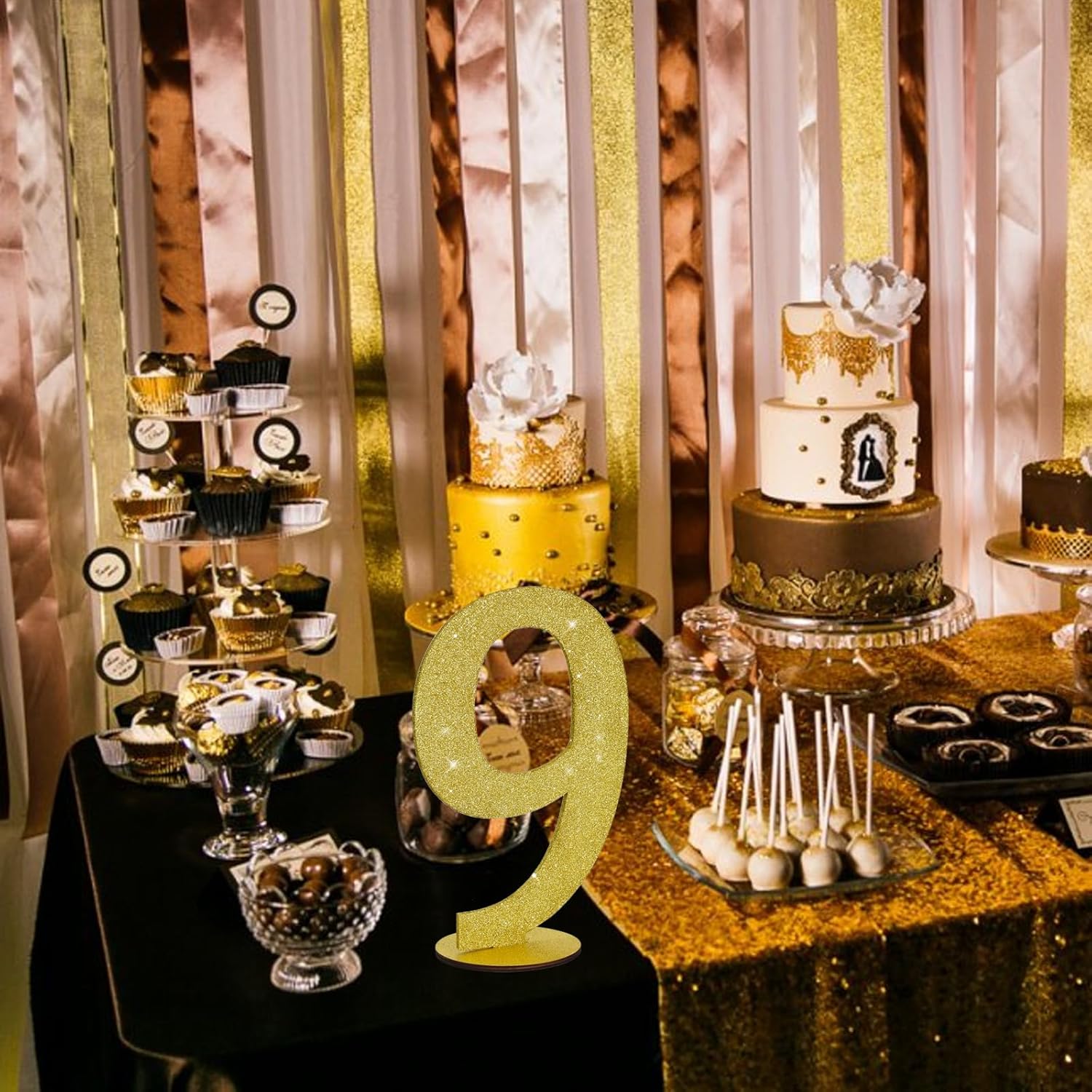 • Good Design: The appearance is adorned with fine golden glitter powder, completely surrounding the "9" wooden ornaments in every direction. When light hits it, it will reflect the light to attract everyone's attention. Makes a great party decoration
