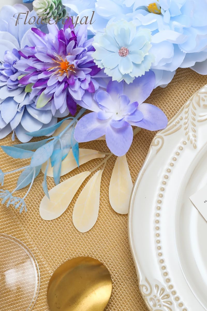 • โ™”EASY TO DIY & CARE-Floweroyal fake flower is a box of pre-selected flowers by color, size and type. If you don't know how to make flower arrangements, we have picked out all the right kind of flowers for you to create. Our flexible plastic flower stems have built-in iron wires. It's very easy to stick in flower mud to arrangements or bend for DIY. Do not have to water and no dead leaves. Easy to clean and remove the dust. Not easy to fade. Easy to store for a long time and use repeatedly.