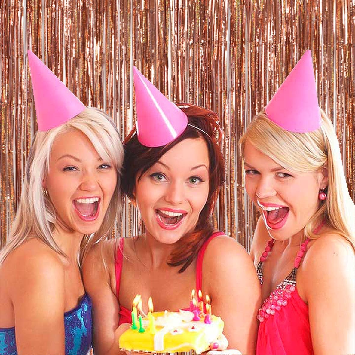 TONIFUL 3Pcs Laser Rose Gold Door Streamers,Laser Rose Gold Photo Booth Backdrop Metallic Streamers Foil Fringe Curtains for Birthday,Christmas,New Year,Bachelorette Party Decor(9.9ft x 6.6ft)