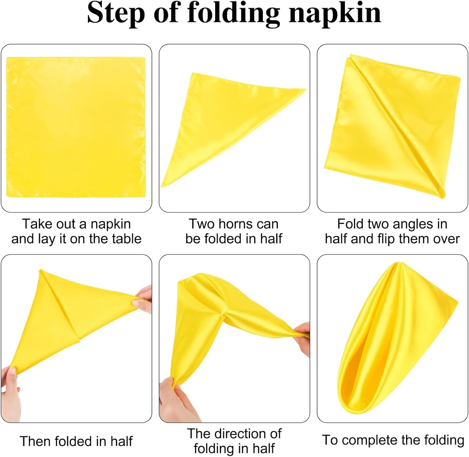 • Wide applications: these satin napkins are suitable for many formal occasions, such as wedding banquet, dinner, conference, celebration, ceremony, all kinds of parties, etc.; and they can be used as decorations and common tools for hotel, family restaurant, kitchen; very pratical and convenient