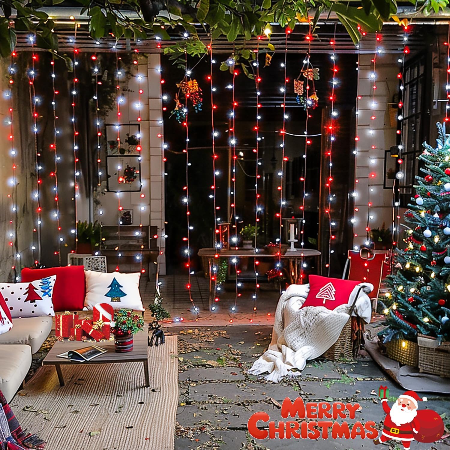 • GREAT DECORATION FOR INDOOR AND OUTDOOR - Our outdoor Christmas curtain lights are waterproof (IP44), withstand rain and snow, and are ideal for indoor-outdoor use. It can be used for Christmas decor, parties, and backdrop, and is also suitable for daily use, such as hanging it on tapestries, sliding doors, rooms, and windows, It looks amazing. These backdrop curtain lights are what you are looking for, it is so mesmerizing! Note: the plug is NOT WATERPROOF, please put it in a dry place