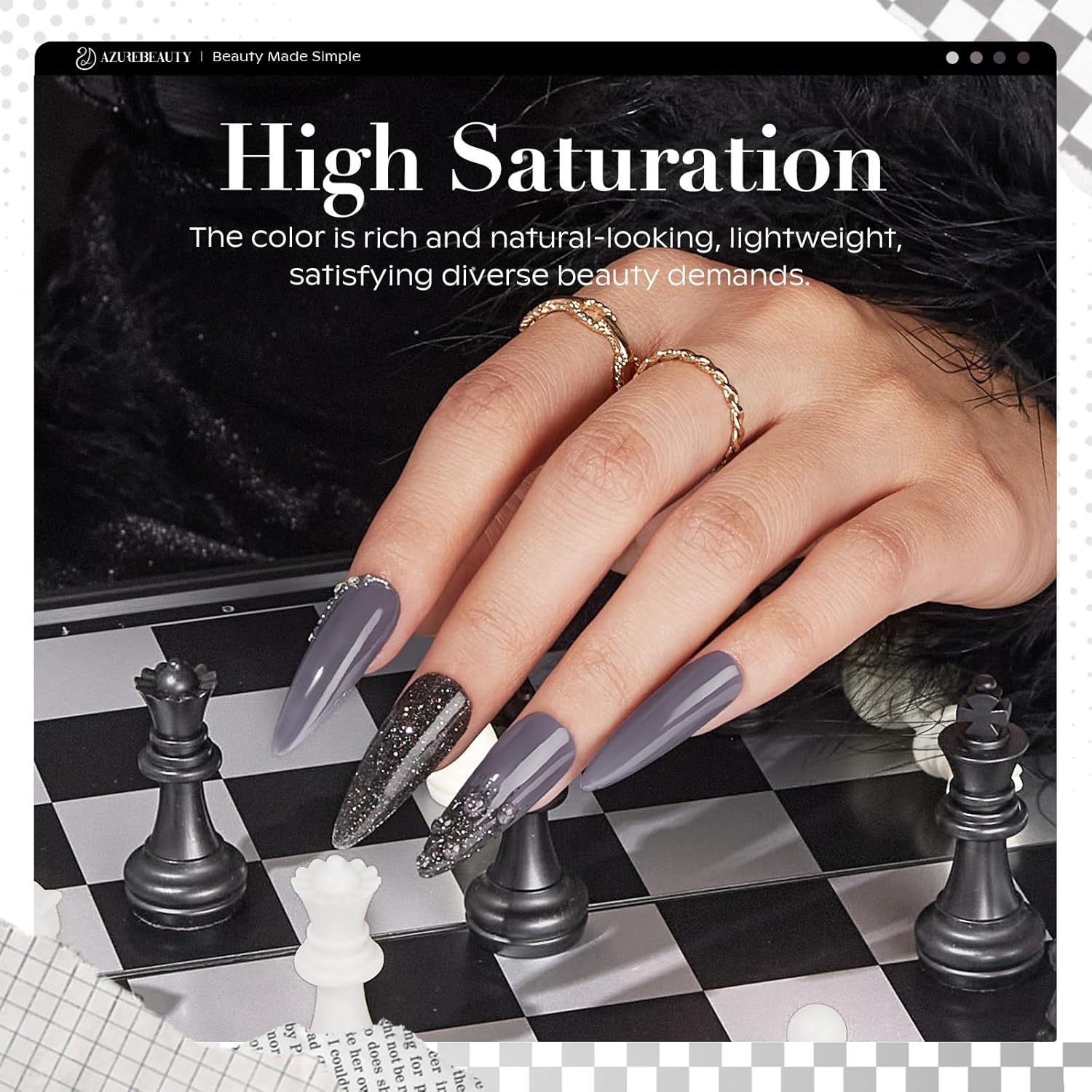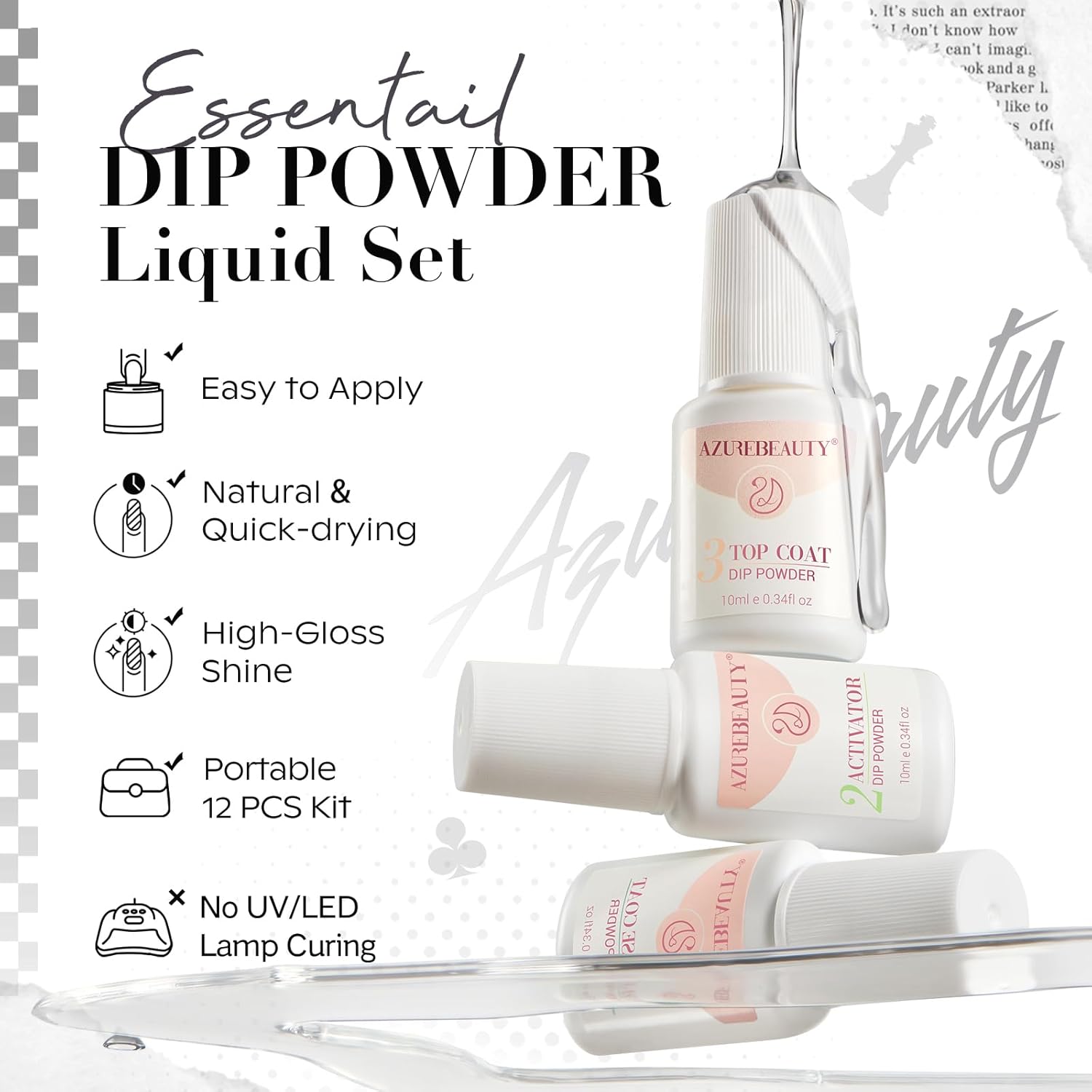 • What U Get: AZUREBEAUTY 12 PCS elegant dip powder nail starter kitβ€”4*10 g color powder(pale gray, celadon, steel grey, shimmery black), 3*10 ml liquid set(base coat/activator/topcoat), 2*liquid brush replacement, 1*nail brush,1*nail file, 1*dip powder recycling tray