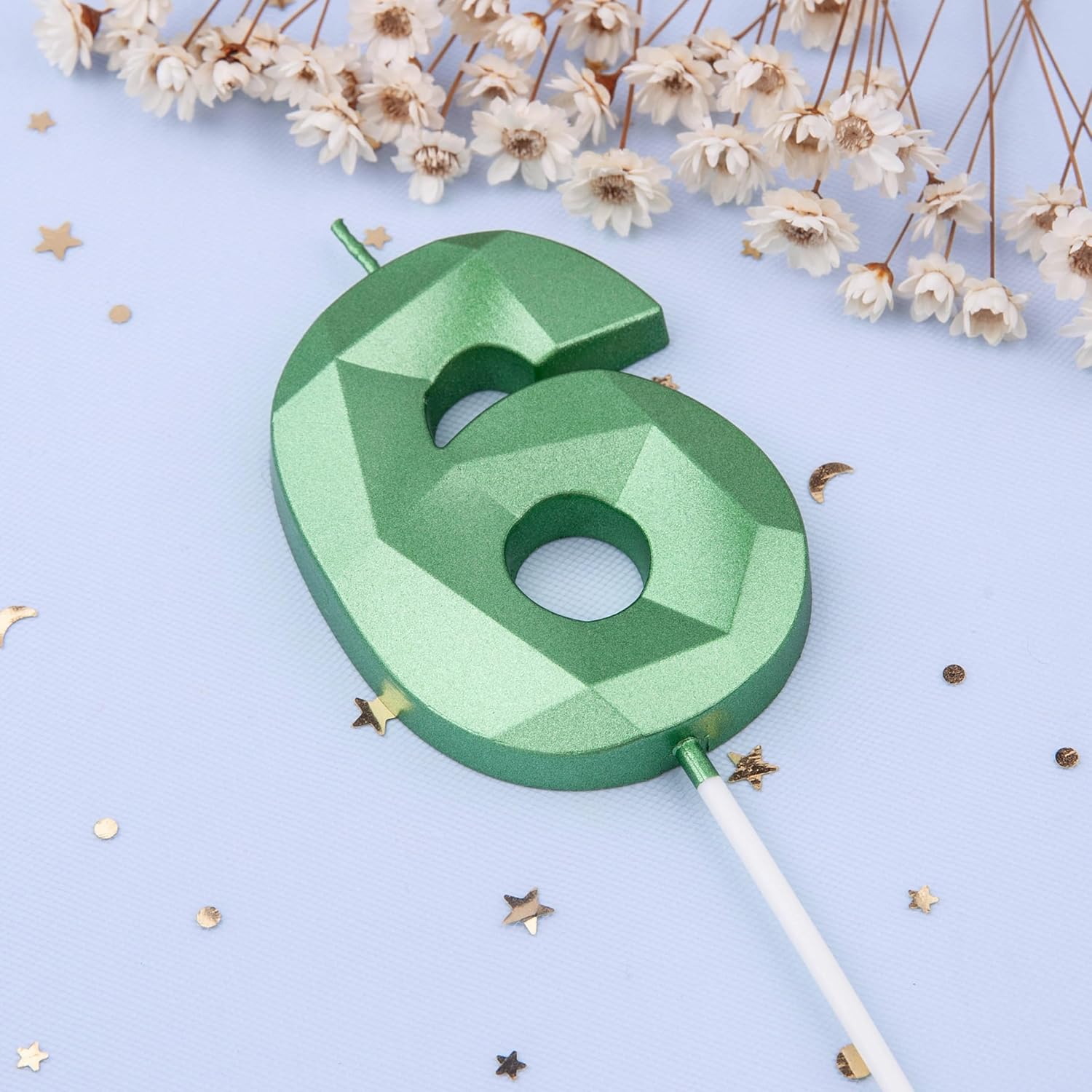 • New: 2.76 Inch Large Crystal Green 6 Number Birthday Candle designed to make your cake and birthday a unique and truly inspiring event.