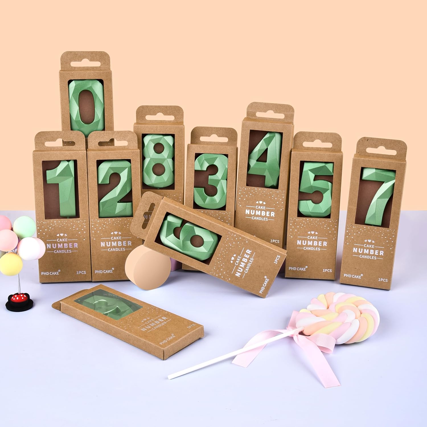 PHD CAKE 2.76 Inch Crystal Green 6 Number Cake Candle, Numeral Birthday Candles, Green Number Candles, Party Celebration