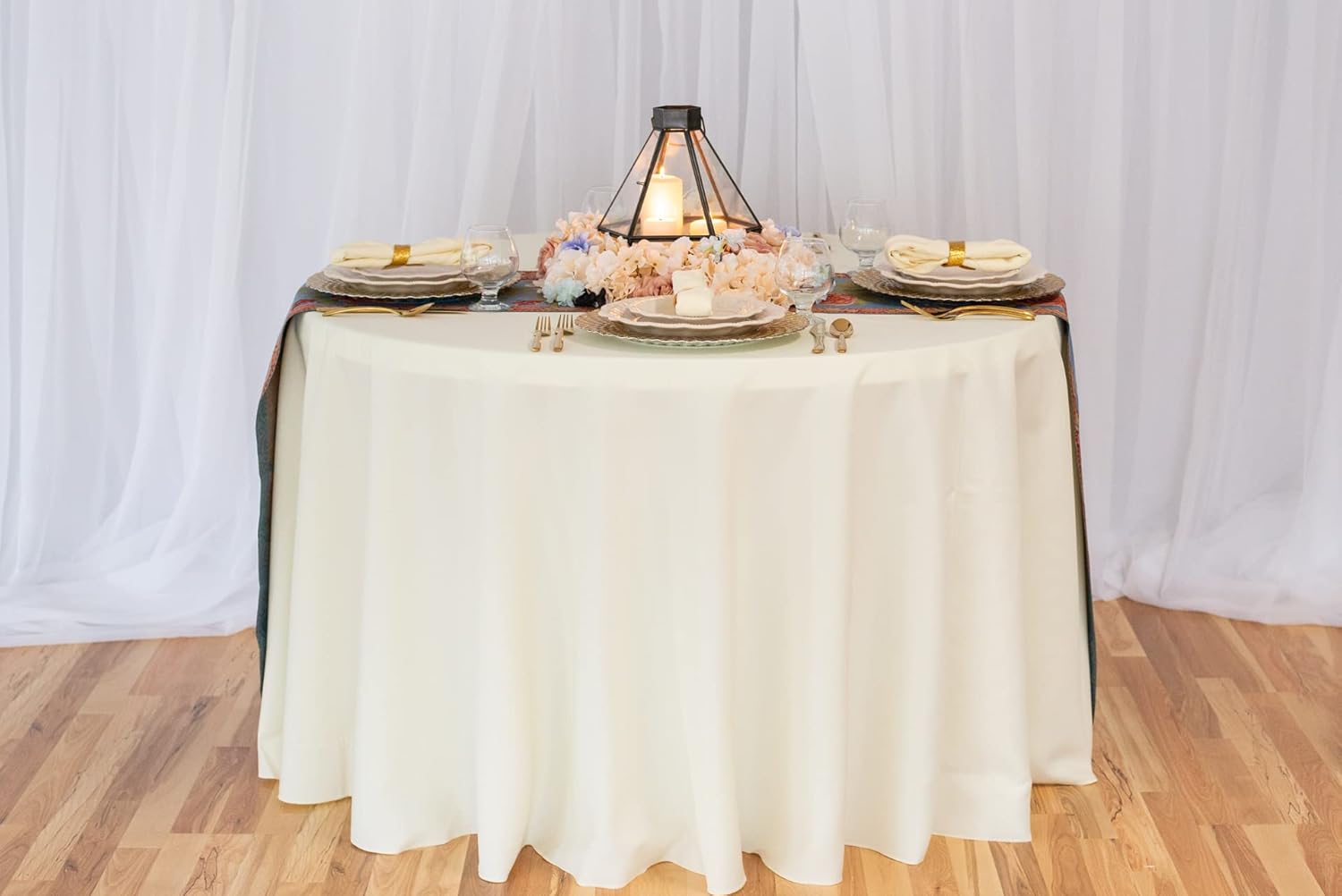 LTC LINENS 5 Pack 108 Inch Round Tablecloths Ivory - Great for 48 Inch Round Table Floor Length - Wrinkle Resistant Polyester Fabric Cloth for Wedding