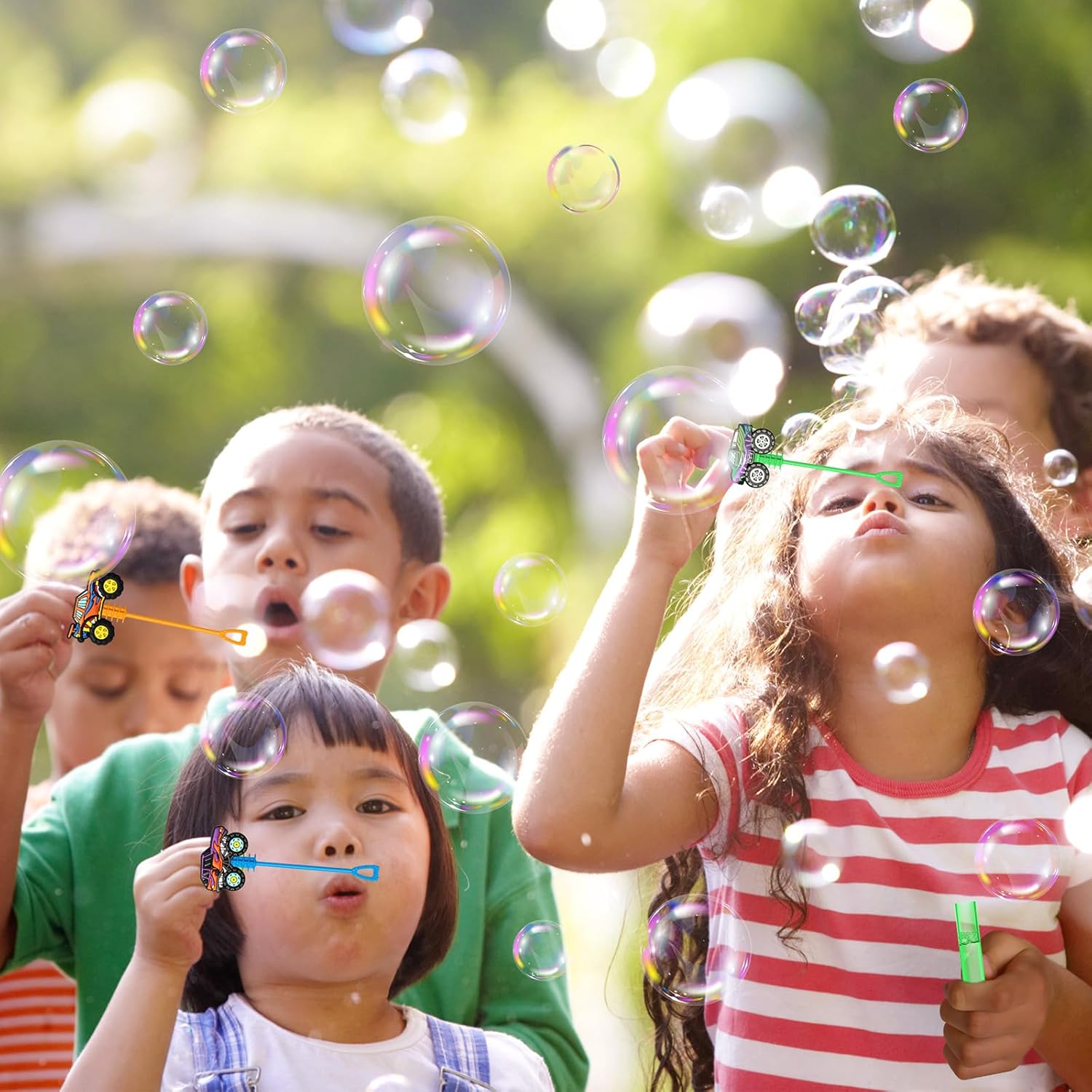 • Monster Truck Bubble Wand Set: Crafted with high-quality plastic materials, sturdy and scratch-resistant, these bubble wands are designed to provide endless bubbly entertainment. Bubble water is a toddler-friendly, non-toxic bubble solution that blows colorful bubbles. The lid prevents the bubble wand from leaking and keeps kids' hands clean. Enjoy hours of bubble-blowing fun with our Monster Truck Bubble Wands set.