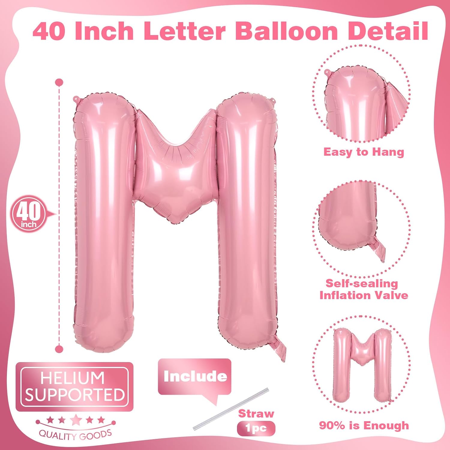 • 🎈 What You Will Get: Our giant letter balloon package includes 1pc 40 inch "M" letter foil pastel pink balloon and 1pc convenient straw for inflate. You can choose any big alphabet balloon to combine and customize the word you want to form. For example: OH BABY, BRIDE, GIRL, BIG SIS. Make your party more unique and meaningful.