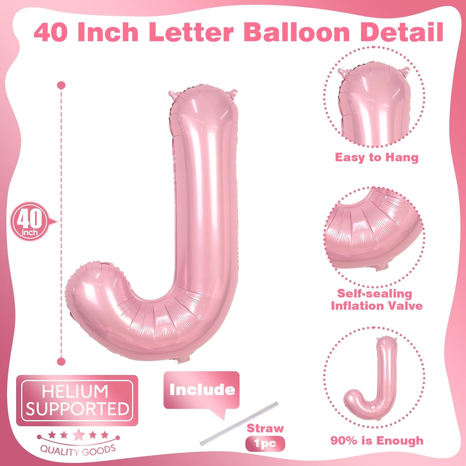 • 🎈 What You Will Get: Our giant letter balloon package includes 1pc 40 inch "J" letter foil pastel pink balloon and 1pc convenient straw for inflate. You can choose any big alphabet balloon to combine and customize the word you want to form. For example: OH BABY, BRIDE, GIRL, BIG SIS. Make your party more unique and meaningful.
