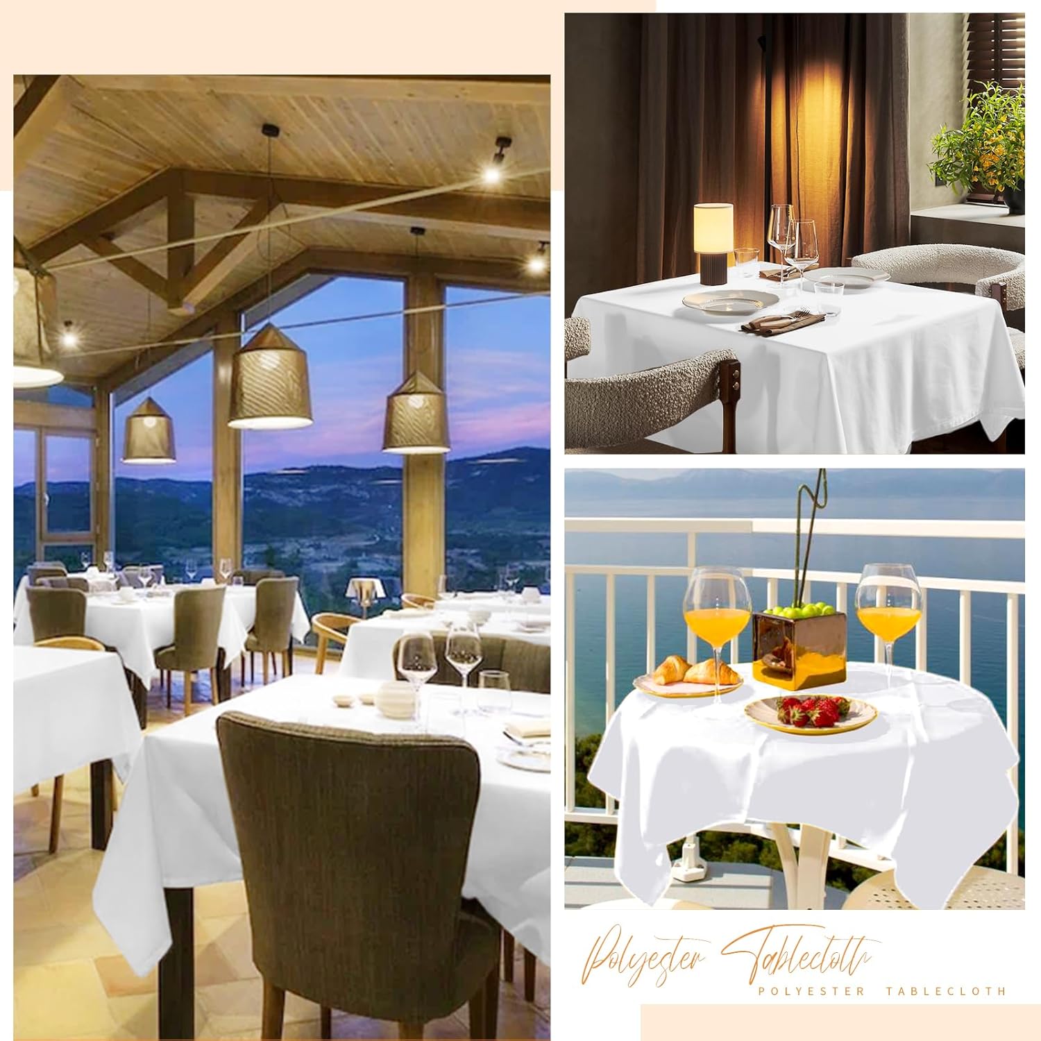 • 🥂【Size】This white table cloth is 52x52 Inch, for standard square table, It can also be used for round tables. White table cover is more luxurious, classic and gracious, for both formal & casual settings and makes a great gift for all occasions.