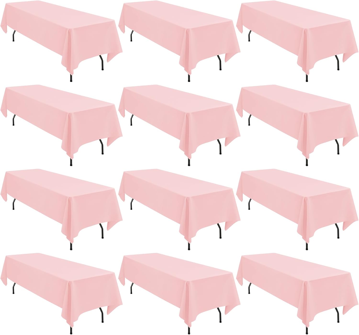 12 Pack Polyester Tablecloth 60 x 126 Inch Pink Tablecloth for 8 Ft Rectangle Tables,Stain and Wrinkle Resistant Washable Fabric Table Covers Polyester Table Clothes for Wedding Parties Banque