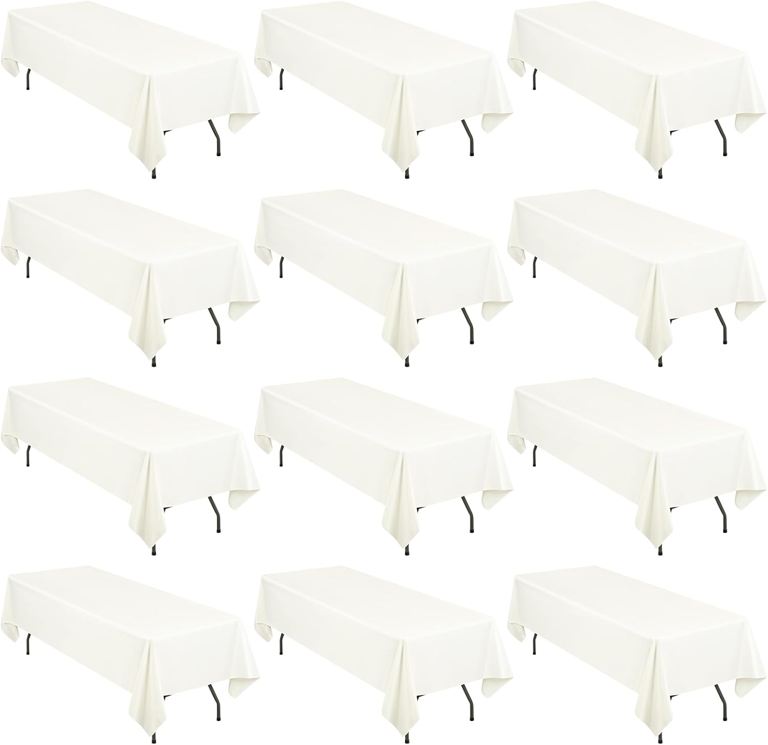 12 Pack Polyester Tablecloth 60 x 102 Inch Ivory Tablecloth for 6 Ft Rectangle Tables,Stain and Wrinkle Resistant Washable Fabric Table Covers Polyester Table Clothes for Wedding Parties Banque