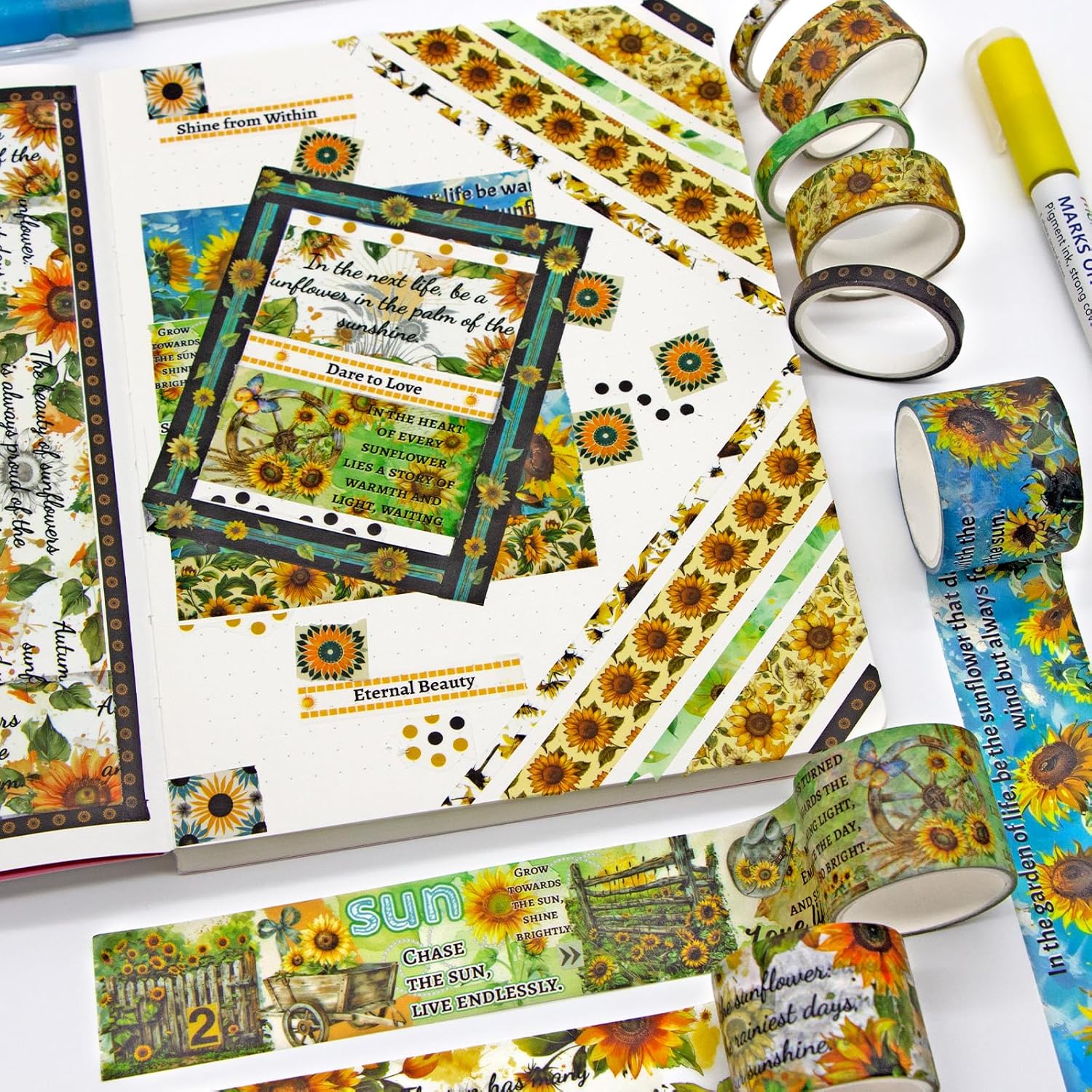 • [High Quality] - The sunflower themed washi scrapbooking tape supplies are made of high quality materials. These decorative tapes can be repositioned and torn. The artists tape can be easily peeled off without leaving any sticky residue and is clearly printed to show clean, bright colors. These unique qualities make washi tape a great set of artwork