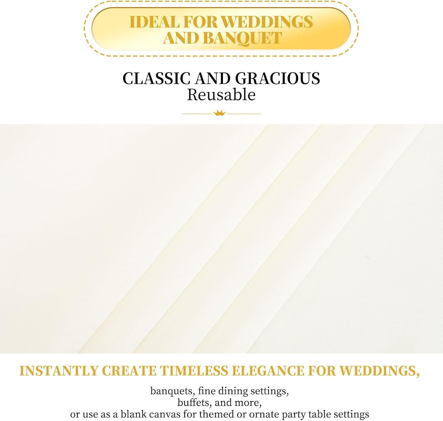 • 🥂【Premium Tablecloth Fabrics】You can get 12 pieces Ivory tablecloth, our tablecloth is made of soft 100% premium polyester fabric,polished look. These materials are as skin-friendly as they are environmentally friendly. Protect and decorate your tables.