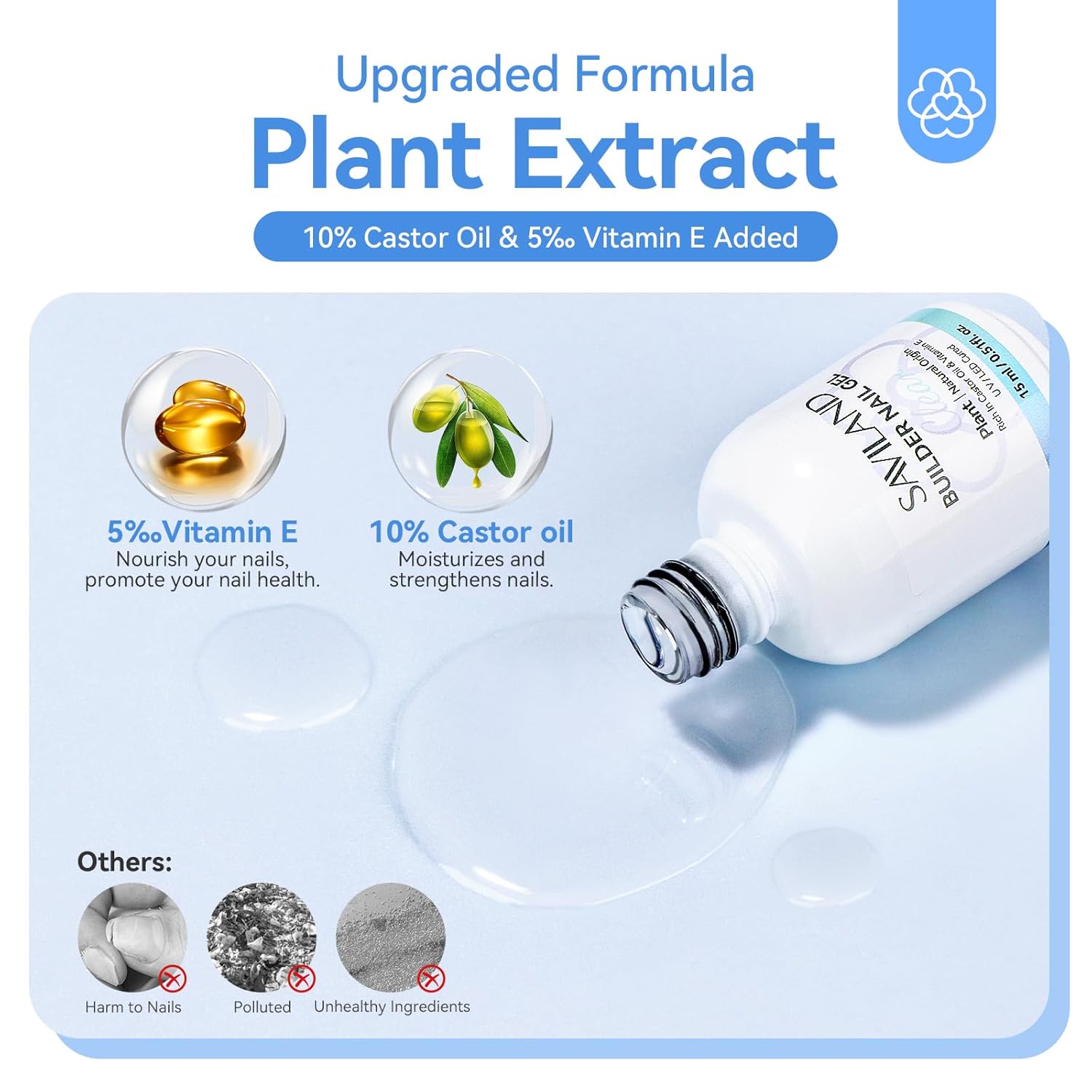 • Rich in Castor Oil & Vitamin E: SAVILAND clear gel builder is added castor oil and vitamin E in the hard gel for nails, foundation gel and top gel, which is the most significant advantage of our new version of nail strengthener gel. While enhancing nails, it can also help moisturize, shine, protect, and promote healthy growth of your nails. Not just staying on a single track like nail design