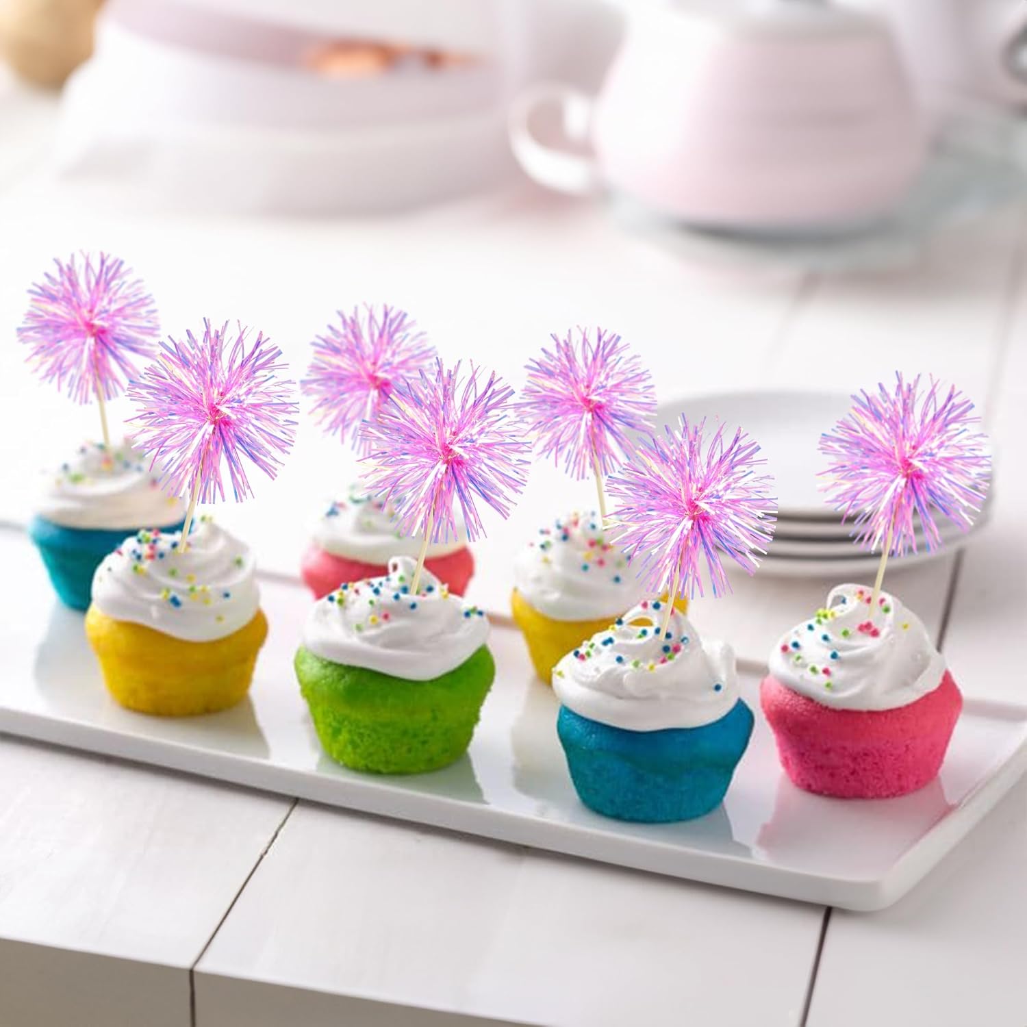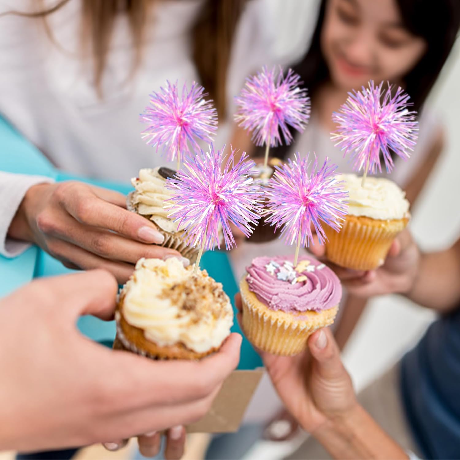 Gyufise 30Pcs Foil Firework Cupcake Toppers Sparkle Tinsel Cake Toppers Tinsel Drink Cake Decoration Cocktail Picks for Birthday Wedding Graduation Party Supplies Laser Rose Red