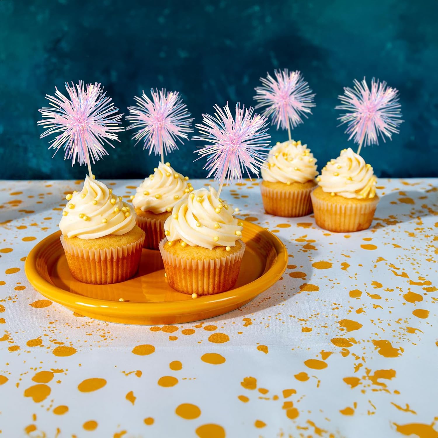 • -Premium Material: These Foil Firework Cupcake Toppers are made of high quality foil and food-grade toothpick, very safe to put them on cakes, cupcakes, ice cream, fruits, pie, dessert, cheese or any dish and food appetizer you want to decorate.