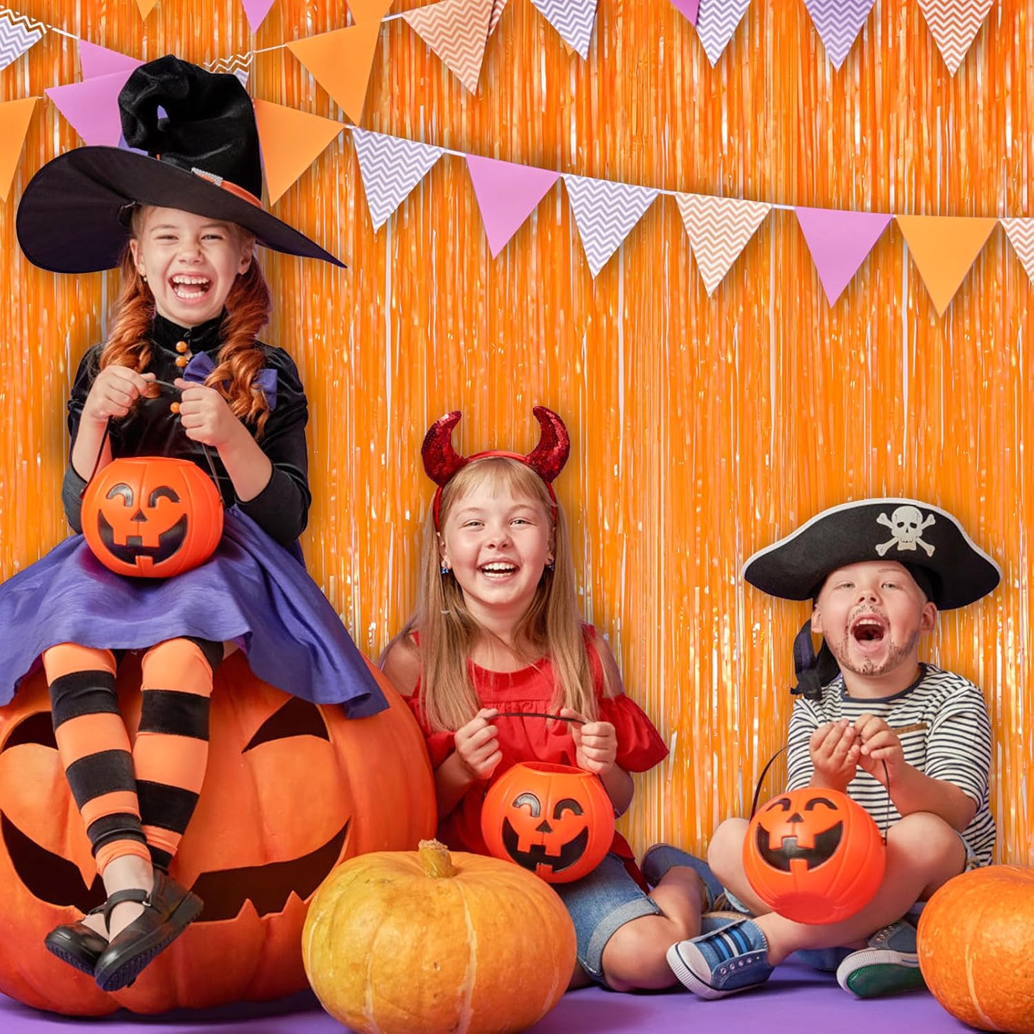 Macaron Orange Fringe Curtain Party Streamers 2Pack 3.3 x 8.3 Ft Foil Fringe Backdrop Curtains for Birthday Wedding Bridal Baby Shower Holiday Tinsel Streamers Orange Party Decorations Door Streamer