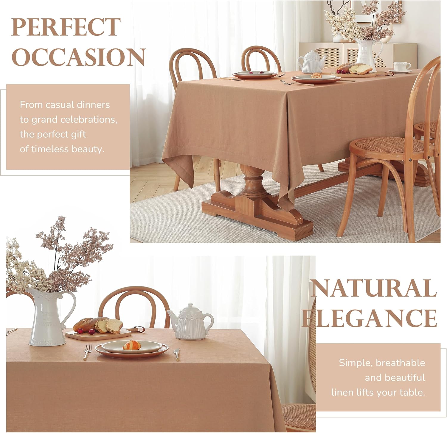 • Designed for Versatility: Versatile Elegance for Every Table: Whether it's a casual dinner or a lavish party, our linen tablecloth suits every occasion. Its minimalist design complements any tableware, making your dining setup effortlessly sophisticated. Available in multiple sizes, perfect for indoor and outdoor settings.