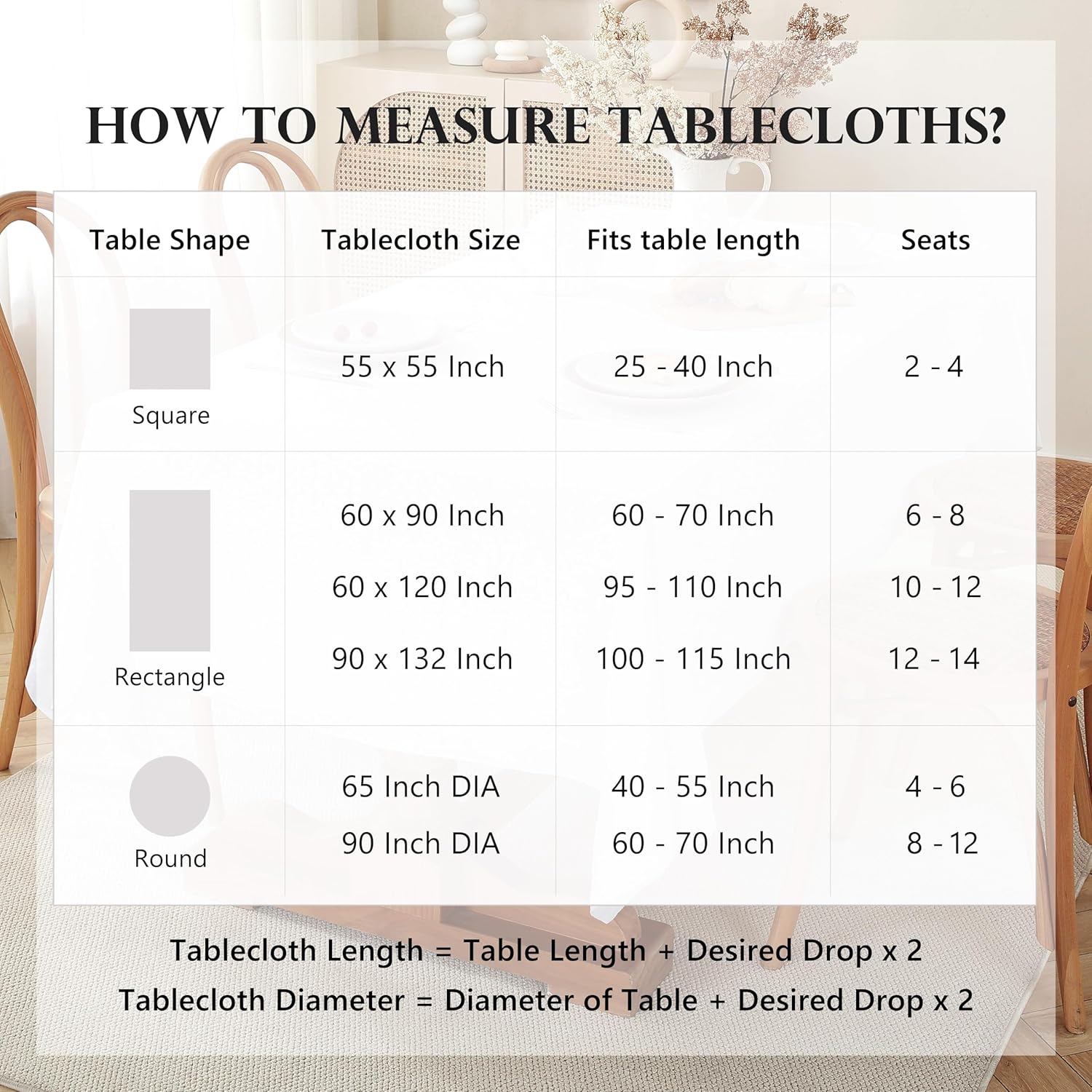 • Easy Care, Long Lasting Beauty: Effortlessly Stylish: Our tablecloths are designed for ease. Machine washable and getting softer with each wash, they offer the perfect blend of luxury and practicality. Minimal ironing required, they're an embodiment of laid-back elegance that improves with age.