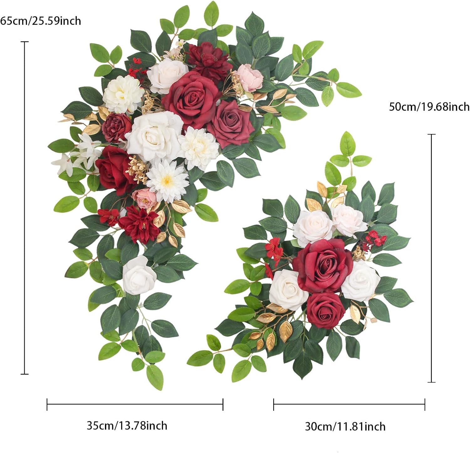 Pack of 2 Artificial Flowers for Backdrop Decoration, Wedding Arch Flowers,Reception Welcome Sign, Eucalyptus Garland, Suited to Aisle Decor and Wedding Arches (Red White)