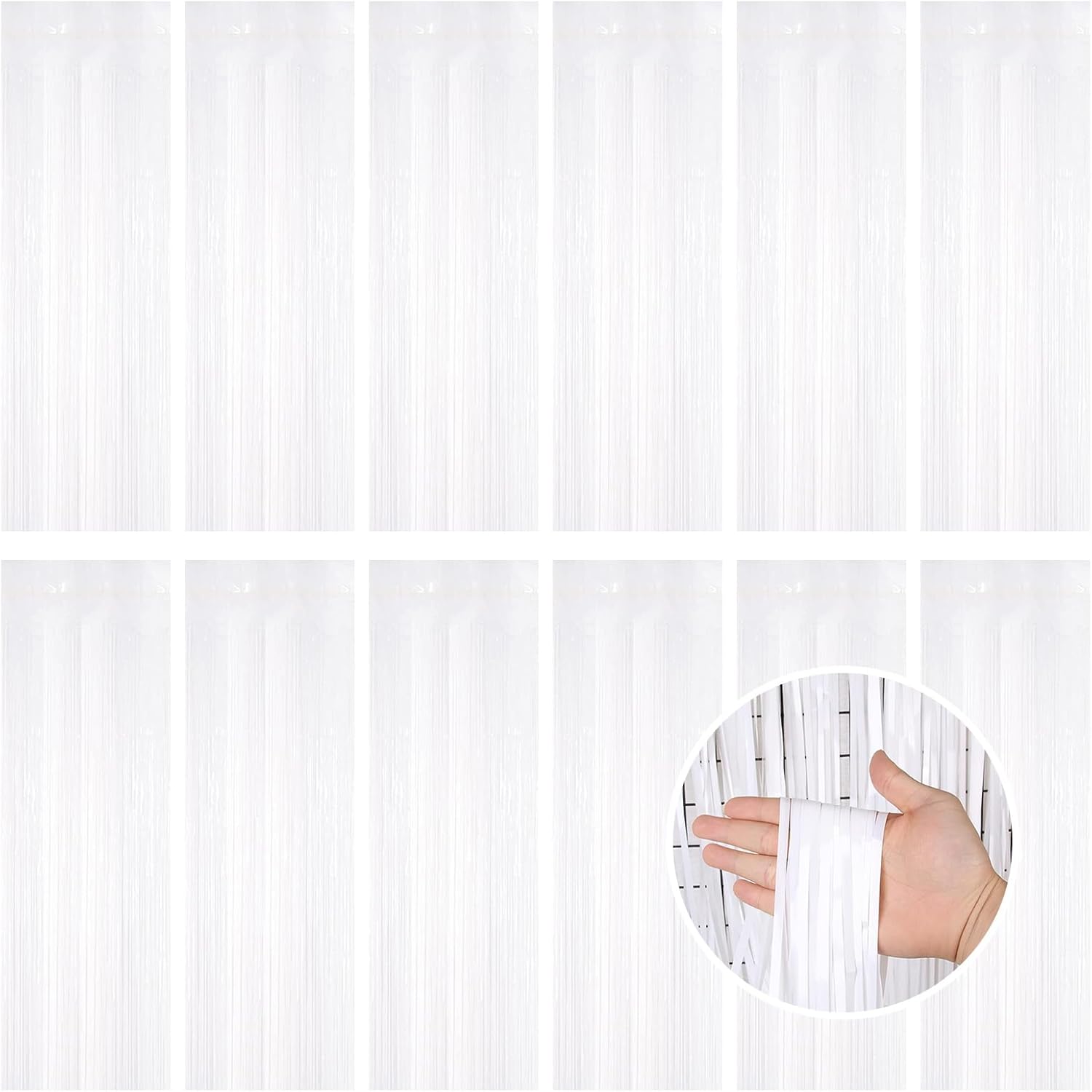 • 【Generous Quantity】Our party decoration supplies include 12 pieces of white party streamers, the size of each white foil curtain is 3.3ft x 8.2ft(1m x 2.5m). The extended length and rich quantity can help you create a sparkling party atmosphere and meet your various party decoration needs.