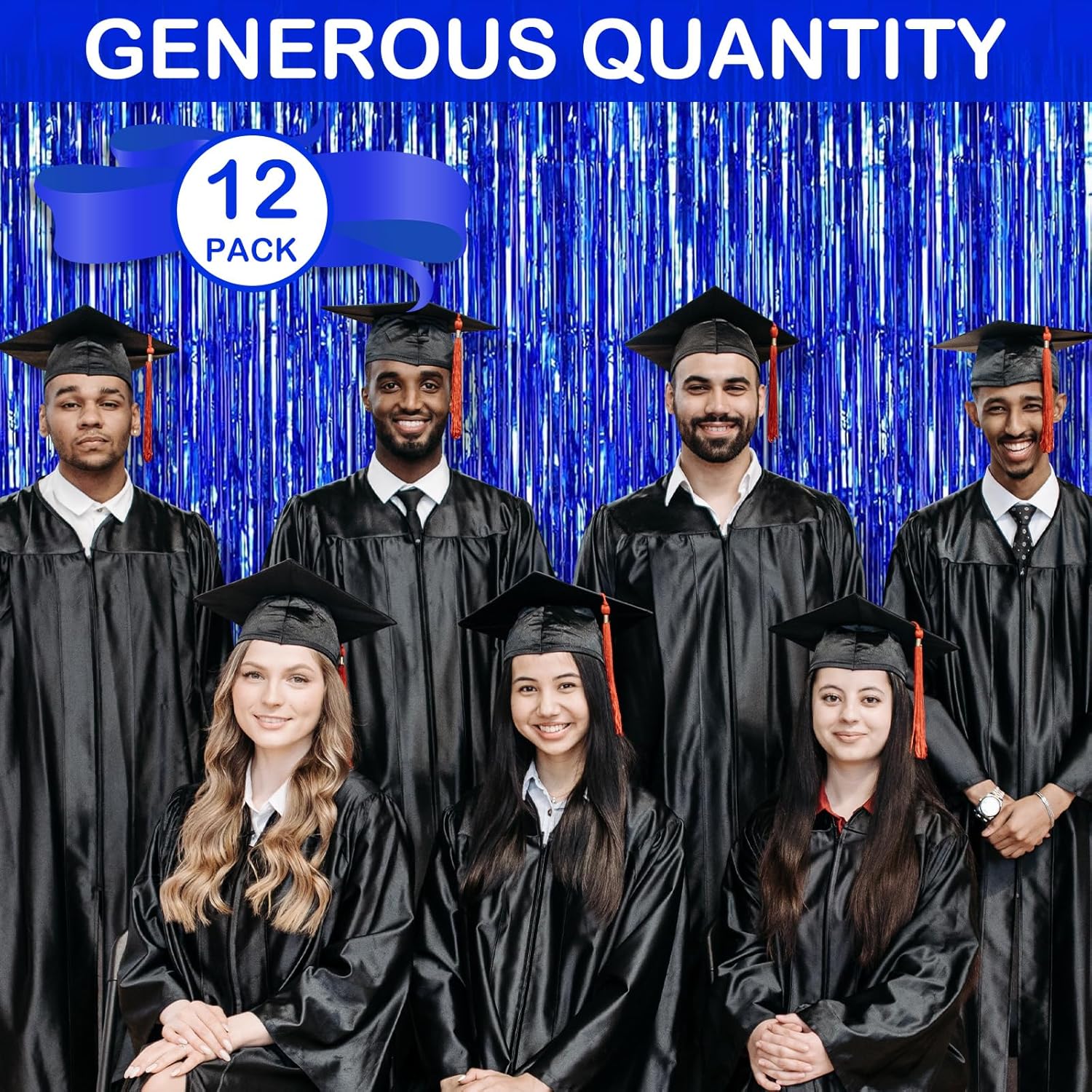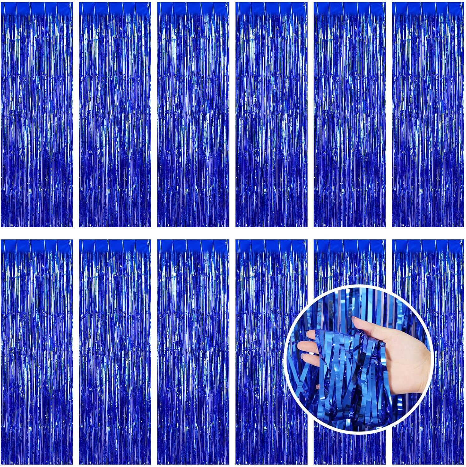 Blue Fringe Curtain Party Streamers, 12 Pack 3.3ft x 8.2 ft Foil Curtain Backdrop Tinsel Foil Fringe Curtains Photo Booth Backdrop Streamer for Birthday, Wedding, Baby Shower, Disco Party