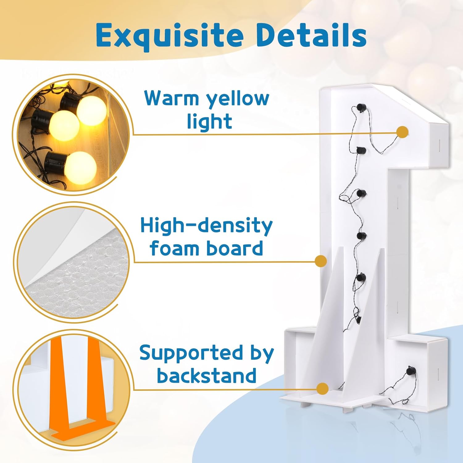 • Equipped with 2 Yellow Light Strings: Large marquee numbers include matching light strings, so you can say goodbye to the annoyances of incompatible light strings.