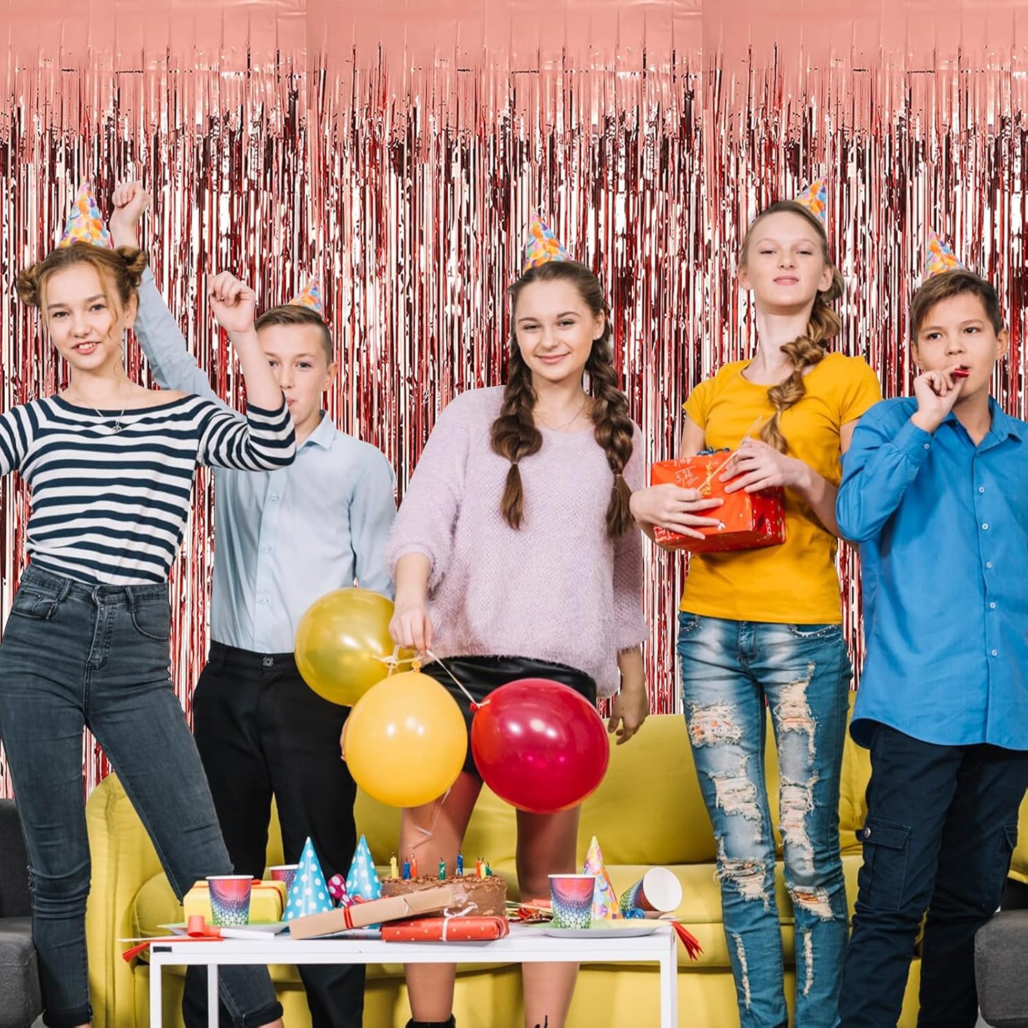 • 【Ideal Party Decoration】Show off your creativity and make your party stand out by using these rose gold foil fringe curtains to decorate your party. You can hang them on a door or wall as a surprise entrance to the party, or pair them with LED lights, balloons, and banners to create a shiny party backdrop for different themes and occasions.