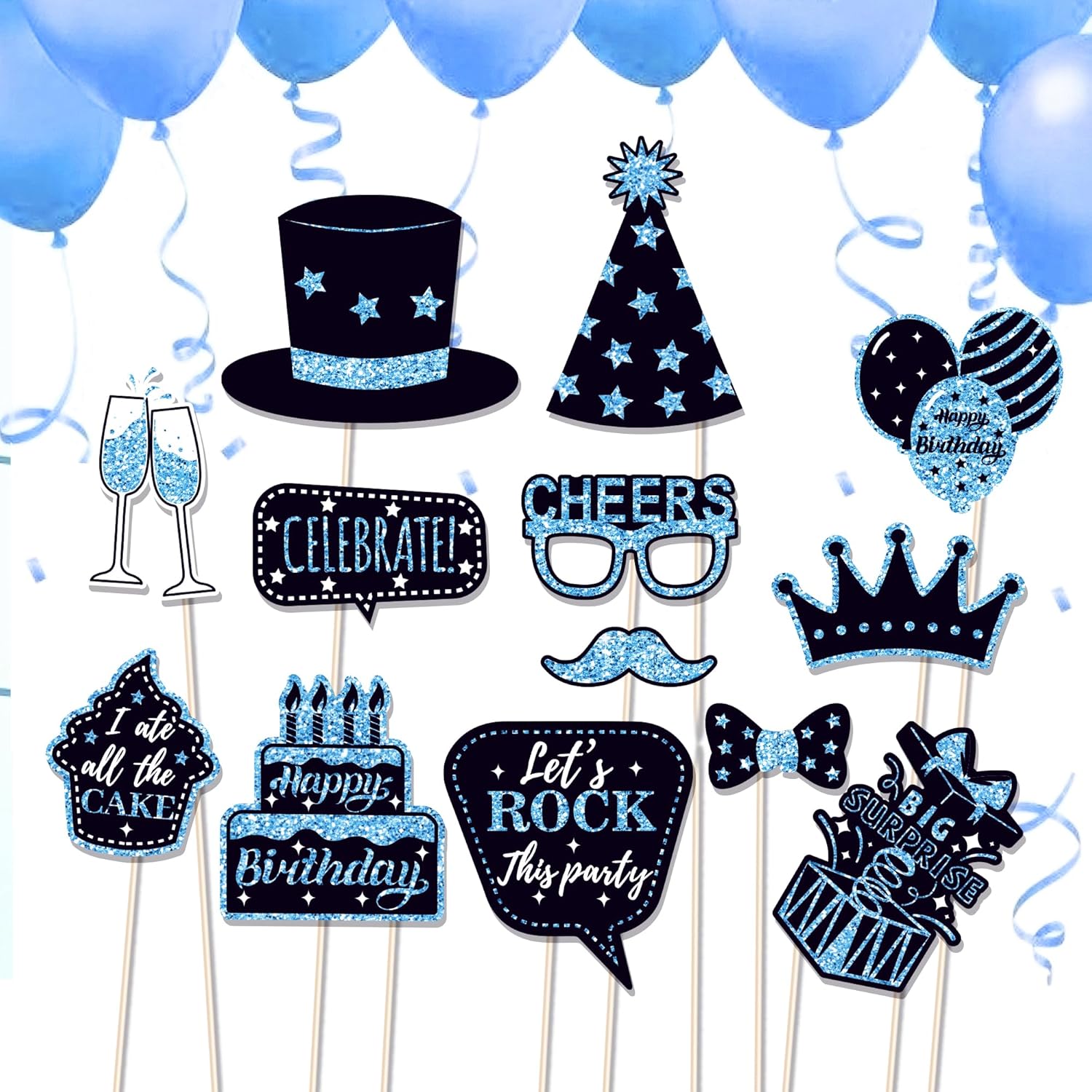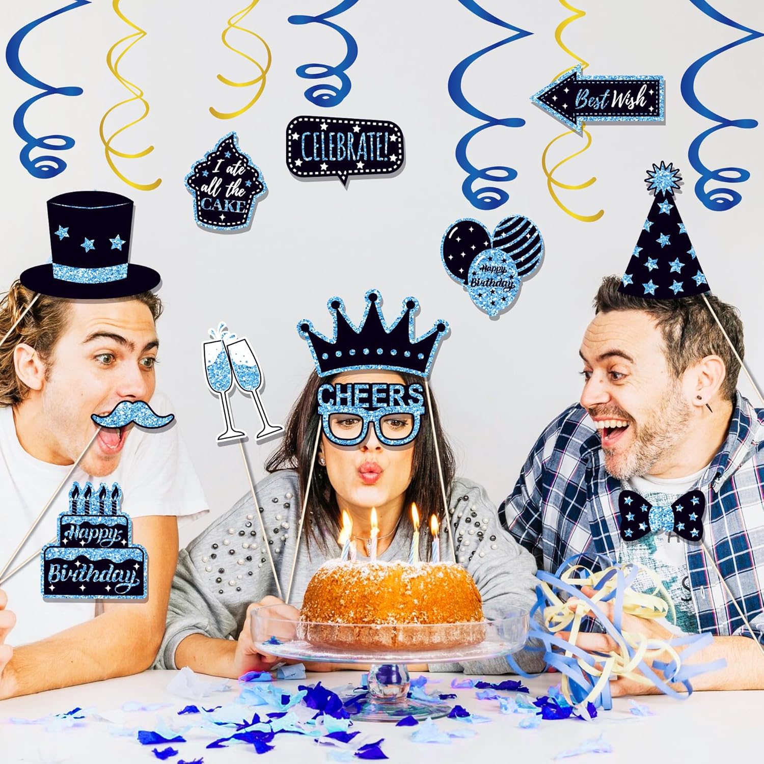 36 PCS Birthday Photo Booth Props Party Supplies Holiday Picture Decorations Photo Booth Props for Birthday Party Favors Pose Sign Kit Fun for Party (Black and Blue)