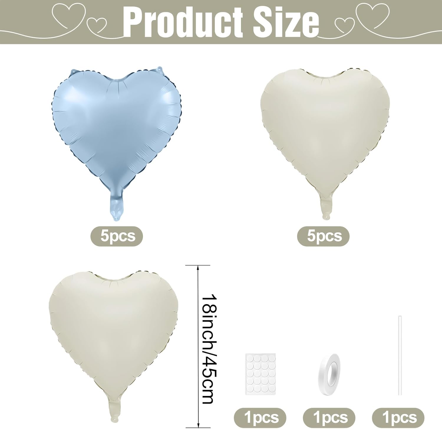 Baby Blue Heart Balloons,10Pcs Cream White Blue Foil Heart Shaped Balloons,18Inch Sand White Pastel Blue Helium Balloon for Valentines,Engagement,Birthday,Baby Shower,Wedding Party Decorations