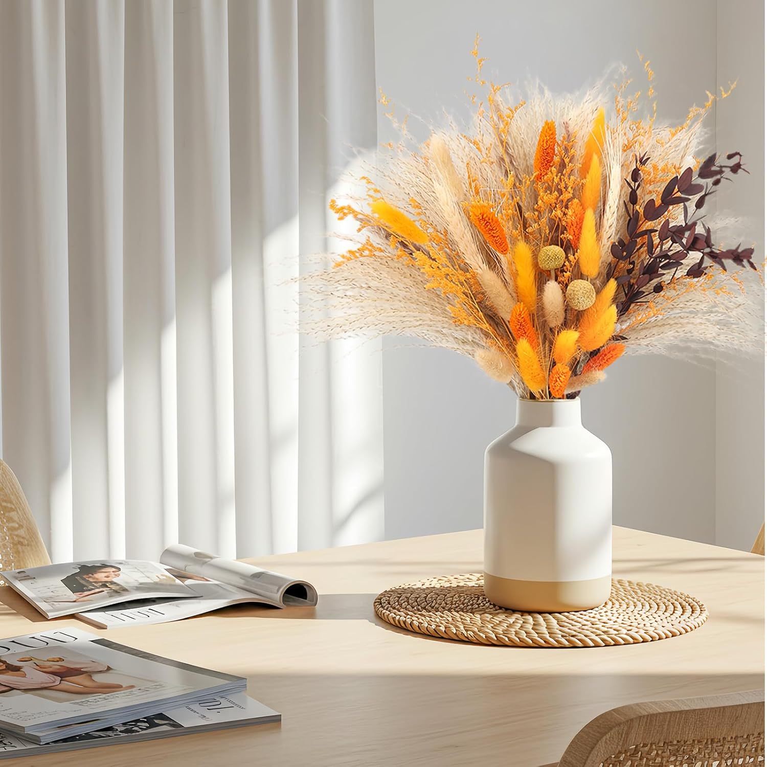 • 2025 FALL DECOR FOR HOME: Short dried orange fall decor pompas is a great suitable home or venue decoration like Fall decorations bouquets for Home, turn your room into a retreat, add oomph to your bathroom, baby shower, wedding, bedroom, living, table, gardens, cafes, restaurant, porch, office and DIY Thanksgiving decorations