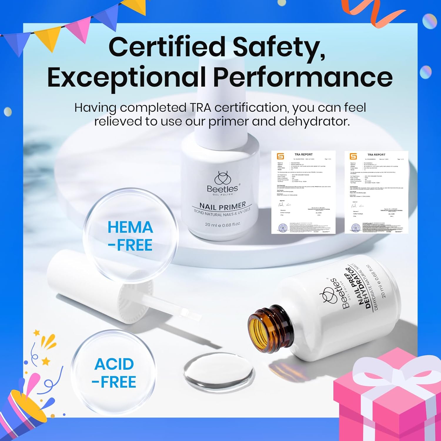 • 【Hema Free Formula】: Beetles nail dehydrator and primer set use an Hema Free formula, which is naturally gentle and will not harm natural nails, while providing excellent cleaning effects.If you are looking for birthday, anniversary, Valentine's Day, Christmas, Mother's Day gifts for your family or friends, the nail prep kit will be a good choice.