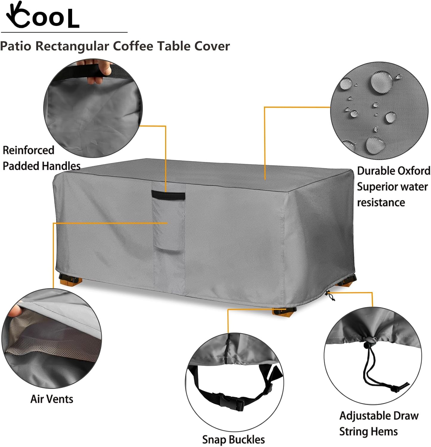 • 【Rectangular Coffee Table Cover】The measures 48"L x 28"W x 16"H,Full coverage design voids the exposure of furniture in the sun makes your patio coffee table always look like new.