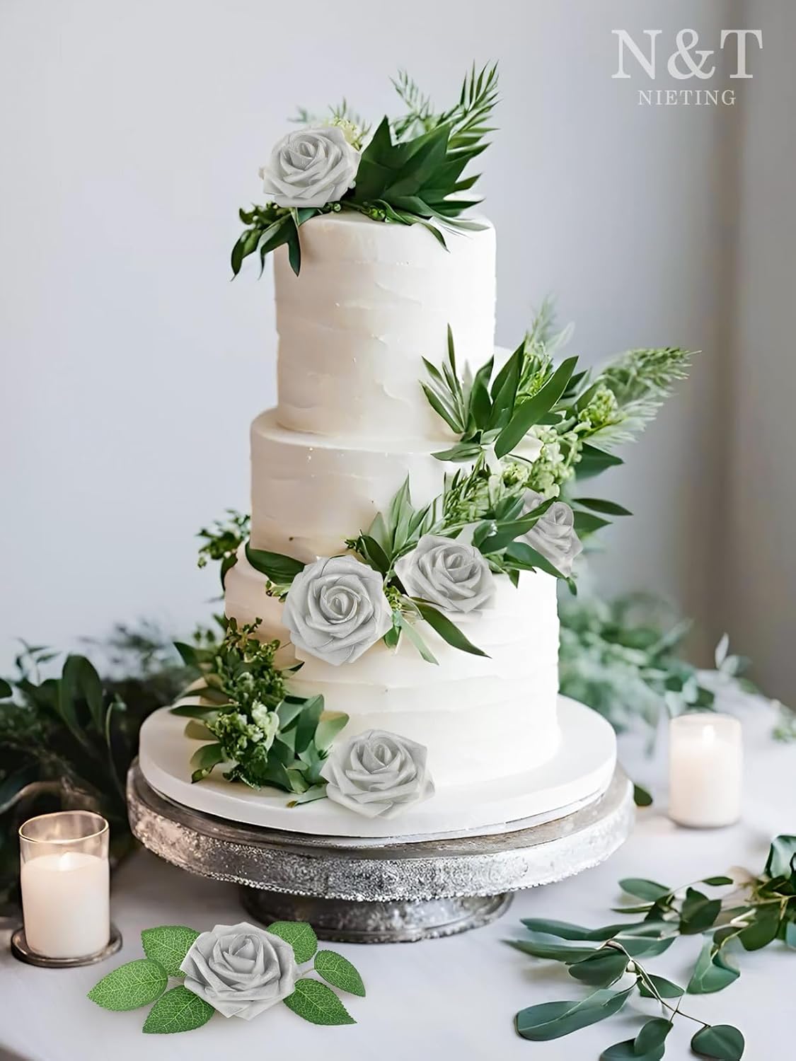• Real Looking Roses: Realistic 50 Silver White artificial roses. Our artificial roses looks pure and elegant. Enjoy the beauty of natural looking flowers without watering, add great touch to your home.