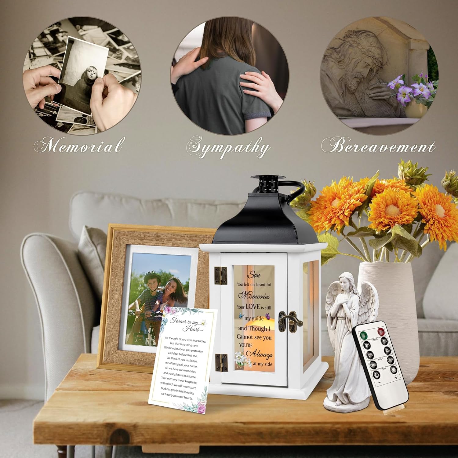 Memorial Lantern for Loss of Son in Memory of Son Bereavement Gifts Loss of Son Sympathy Gift for Mother Remembrance Gifts Memorial Gifts with LED Candle