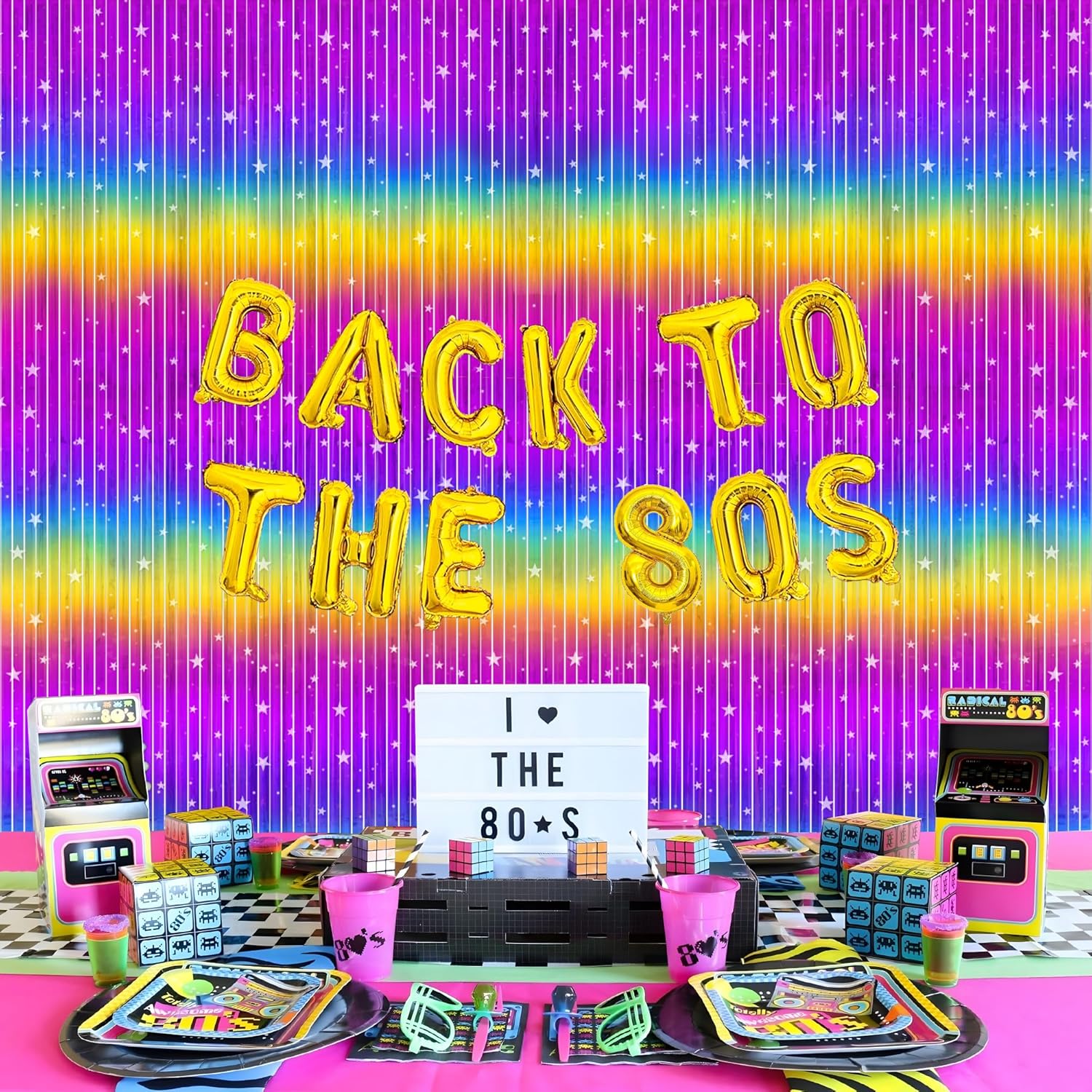 • π‘π€πˆπππŽπ– ππ€π‚πŠπƒπ‘πŽπ π‚π”π‘π“π€πˆππ’ - Perfect for rainbow birthday decorations, 80s 90s party decorations, and any other events you want to decorate.