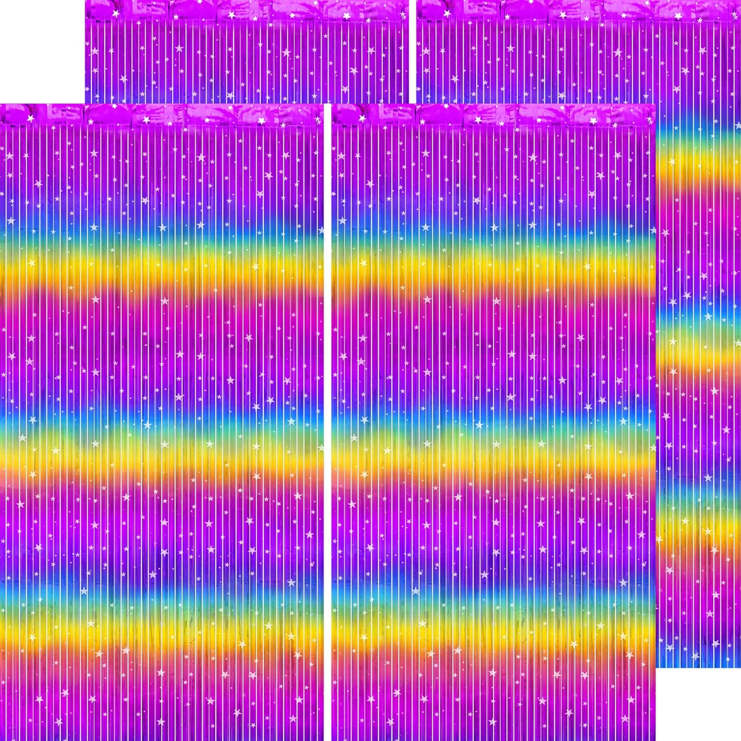 Rainbow Streamers Party Decorations - Thicken 4 Pack 3.2 x 8.2 FT - Rainbow Gradient Tinsel Foil Fringe Curtains, Photo Booth Props Backdrop for Birthday, 80s 90s Party Decorations