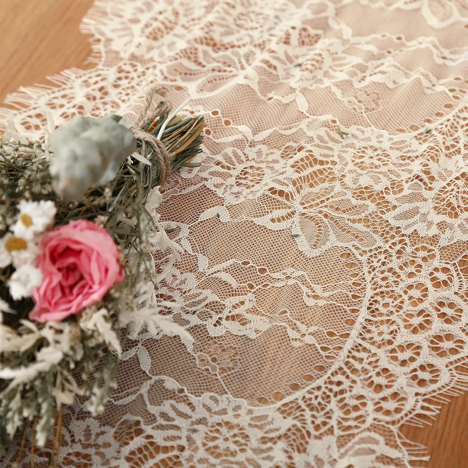 Lace Table Runner 6 Packs Ivory Table Fabric Embroidered Boho Table Runners for Party Wedding Bridal Shower Decorations Vintage Rustic Table Runners 14x120 Inches